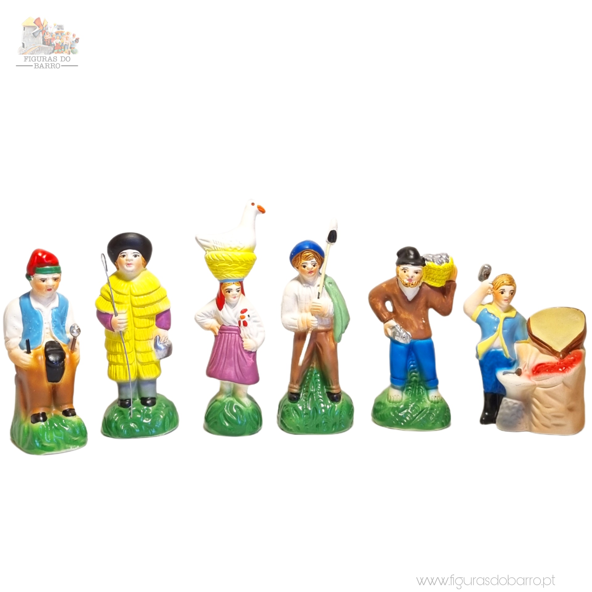 The set is made up of 12 individual ceramic pieces (the figures depict the most varied Portuguese customs and traditions, as well as professions), ideal for completing your nativity scene or the São João waterfalls.