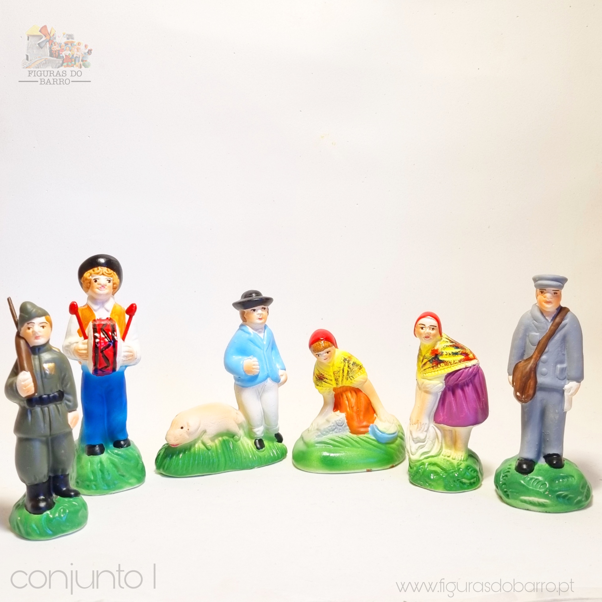 O conjunto é composto por 12 peças individuais em cerâmica (as figuras retratam os mais variados costumes e tradicões portuguesas, bem como profissões), ideal para completar o seu presépio ou as cascatas de São João.