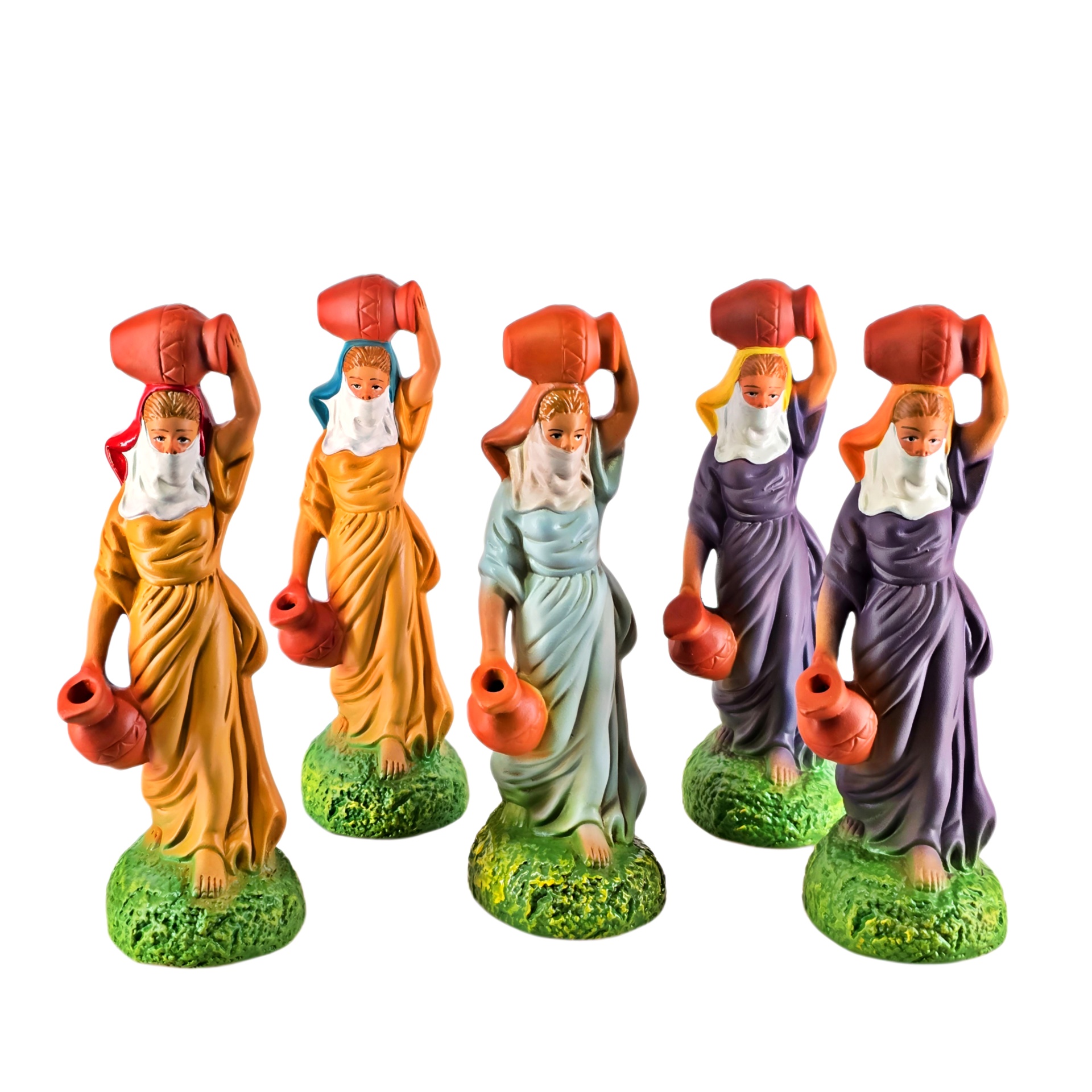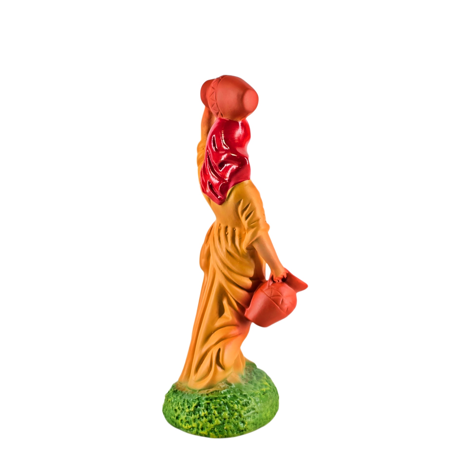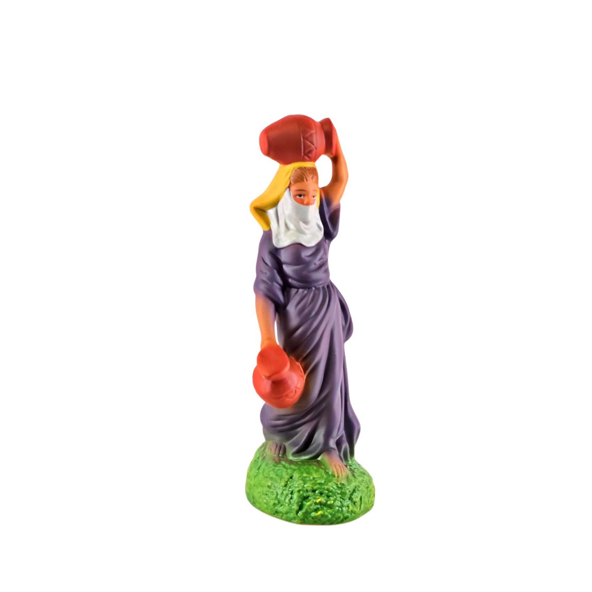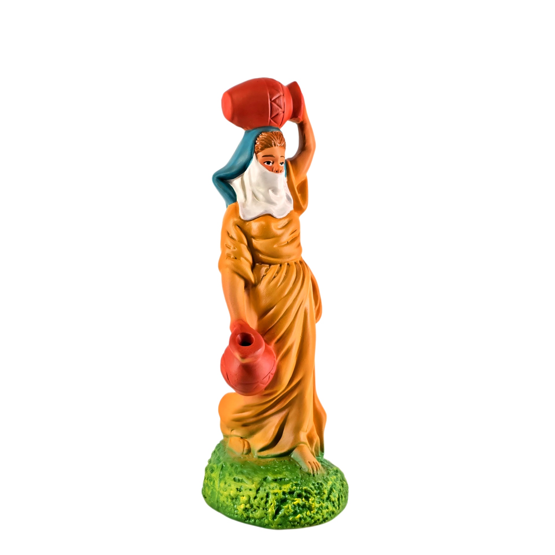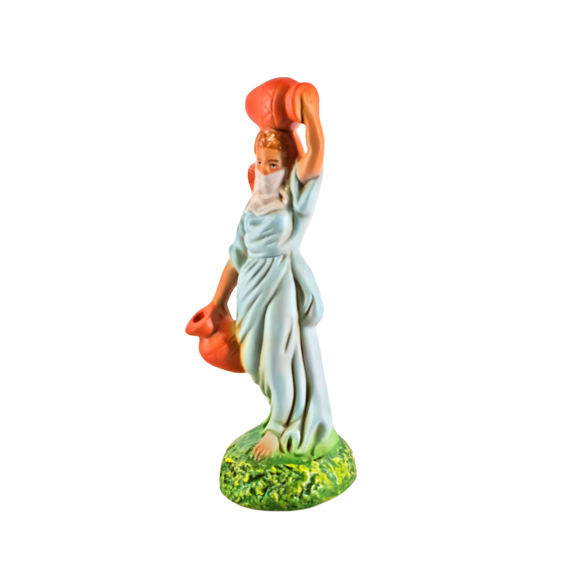 Aguadeira 9,50 € Desconto de %. IVA incluído. Partilhar Cor Vestido Azul Lilás Amarelo Comprar Contactar 1 unidades em stock Aguadeira: figura da mulher com cântaros em cerâmica, ideal para completar o seu presépio ou a cascata de S. João. ----- (peças em cerâmica feitas de forma artesanal e pintadas à mão) ----- As peças em cerâmica, certificadas, são da autoria do Artesão João Macedo de Barcelos. Medidas: aproximadamente 18cm de altura. Ref. Interna: pastores e ofertas 402/O Marca Figuras do Barro® Tags pastorpastor para presepioherdsmanovejaovelhaovelha com sinoovelhascarneirocordeirocarneiroscarnerochristmas cribnativity scenepresepio artesanalpresepio de barropresepio de ceramicapresepio de natalpresepio portuguêshandmadeceramicceramicaClaypeça de cerâmicaPastoraPastora com ovelha Características