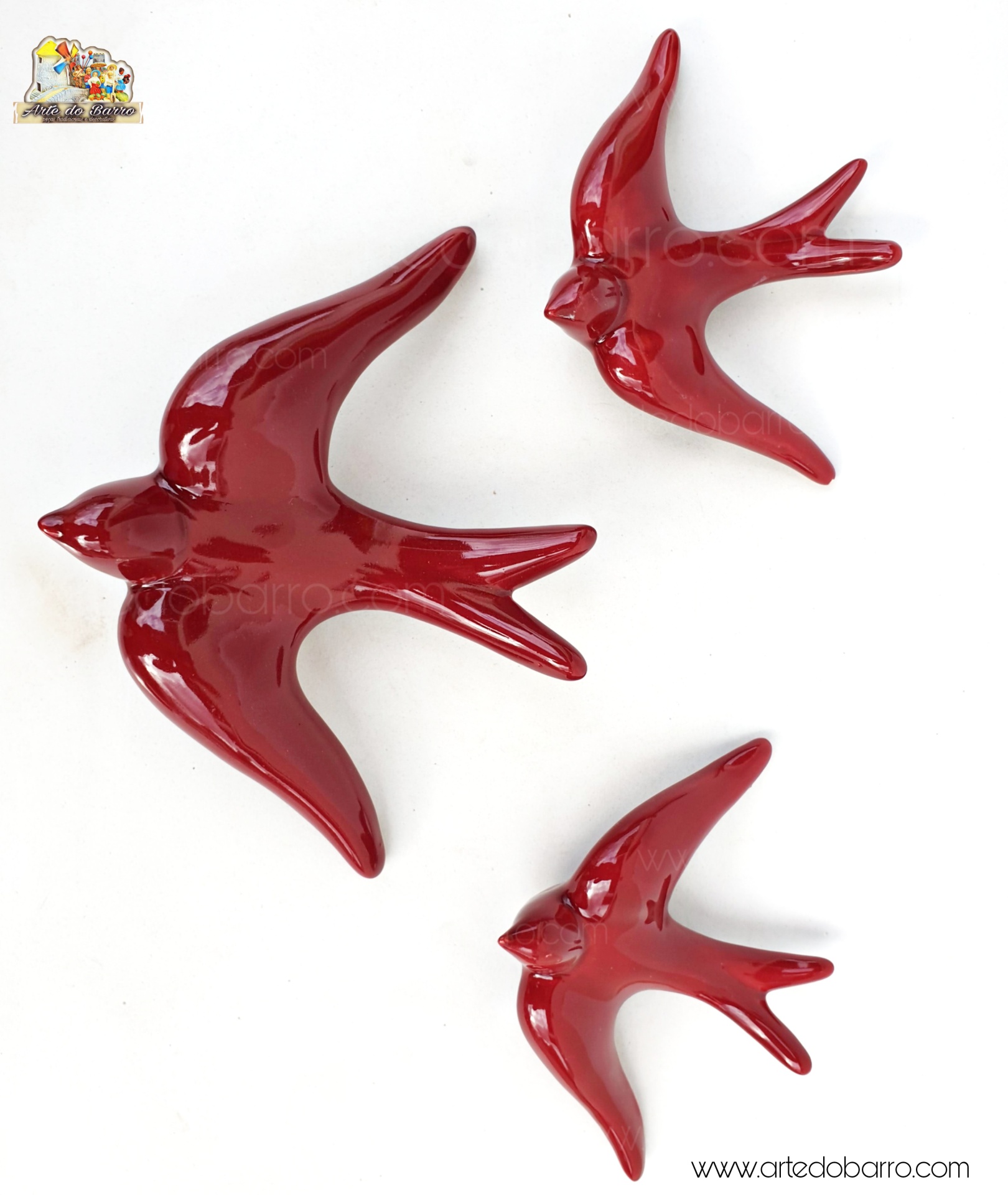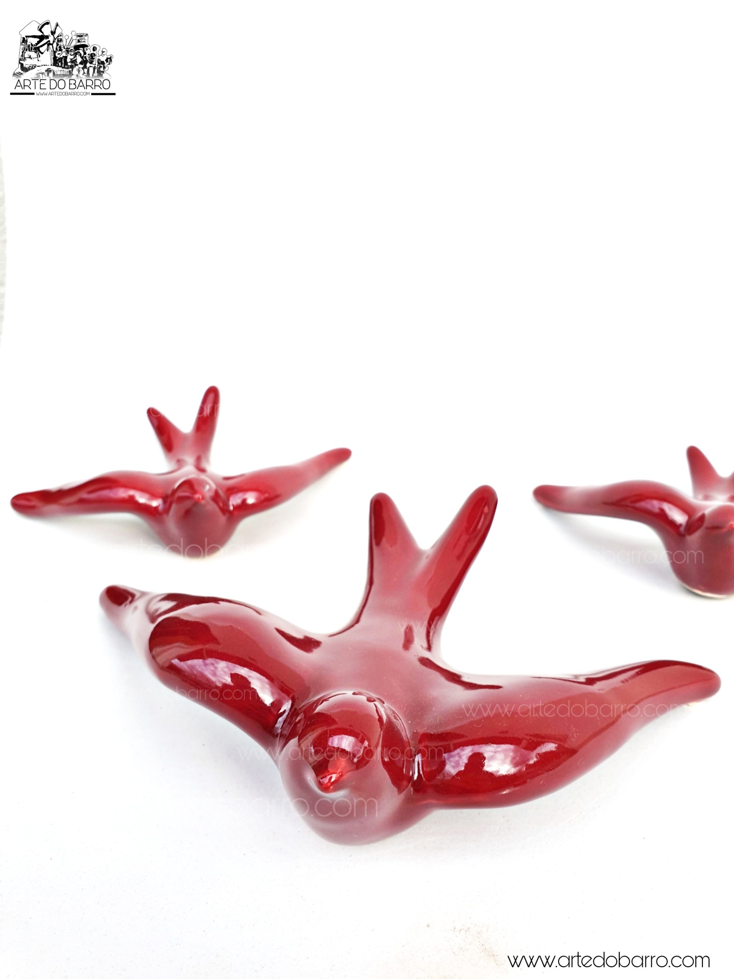 Conjunto 3 Andorinhas Vidradas Bordô 15,00 € Desconto de %. IVA incluído. Partilhar Comprar Contactar 4 unidades em stock Conjunto de Três andorinhas de barro vidrado vermelho bordô. Todas as andorinhas têm um orifício na parte inferior para que possam ser penduraradas na parede. Peças de grande qualidade e muito resistentes ao tempo (são vidradas a alta temperatura e por isso não perdem a cor). PRODUTO TRADICIONAL PORTUGUÊS, Barcelos Conjunto de 3 andorinhas: 2 Médias:- Altura: 10cm- Largura: 14cm- Profundidade: 4cm- Peso: 0,100kg 1 Grande- Altura: 14cm- Largura: 19cm- Profundidade: 5cm- Peso: 0,200kg Marca Tradicionais Portuguesas® Tags andorinhaandorinha de barroandorinhas de barroandorinhas portuguesasswallowsceramic swallowgolondrinasSchwalbenrondiniandorinha de ceramicaandorinha de paredeswallow Características