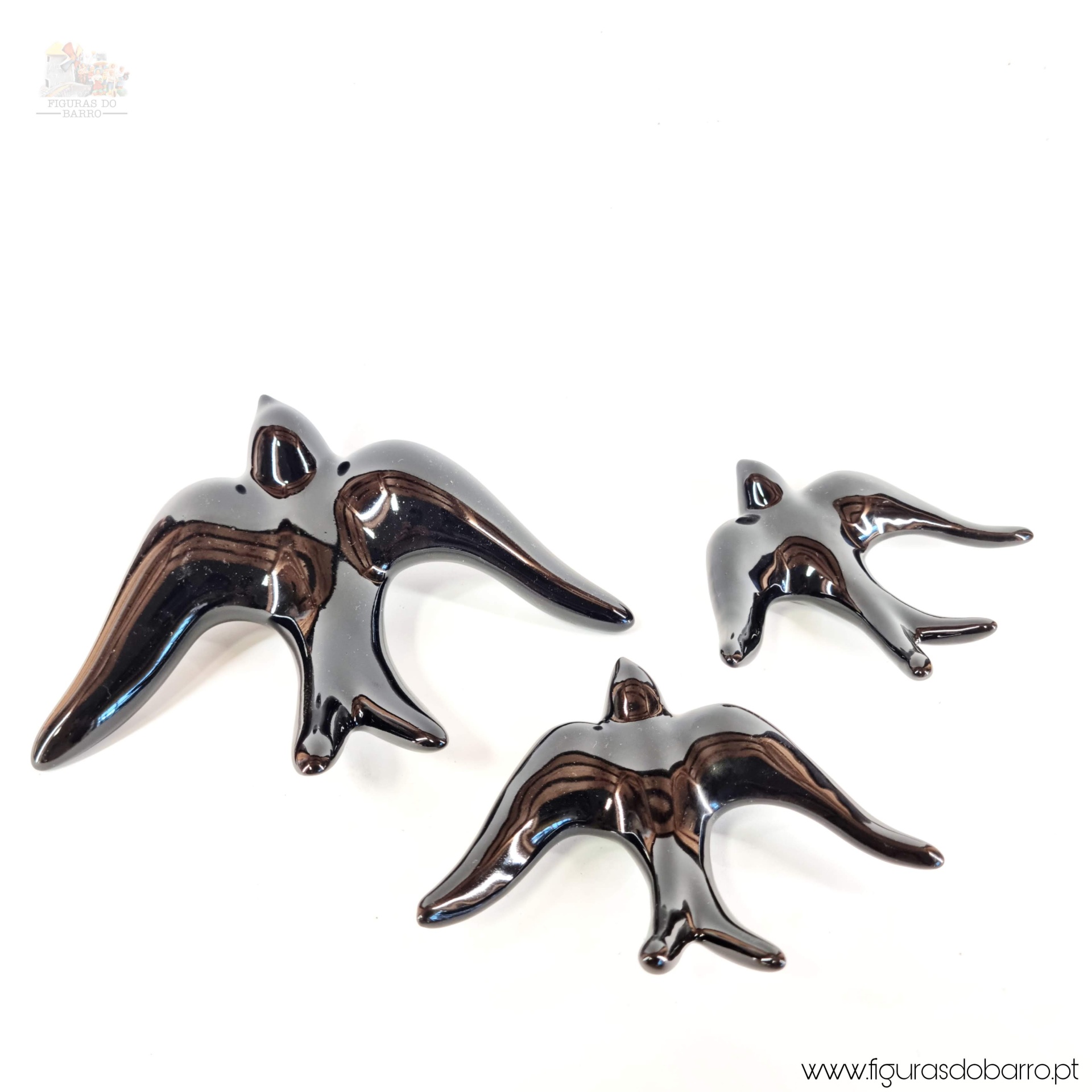 Conjunto de Três andorinhas de barro Vidrado preto.