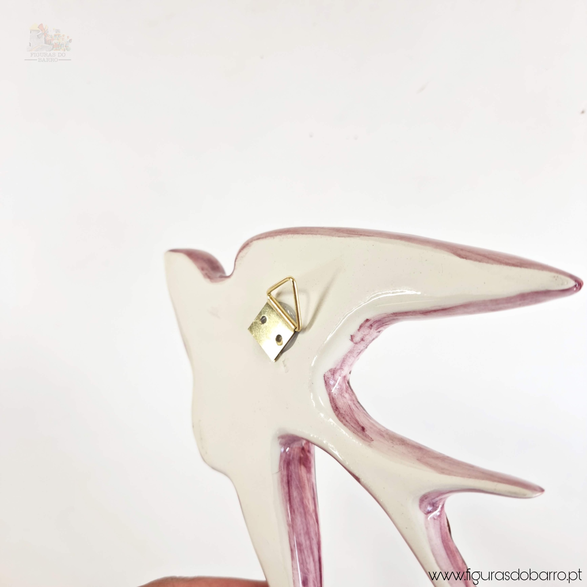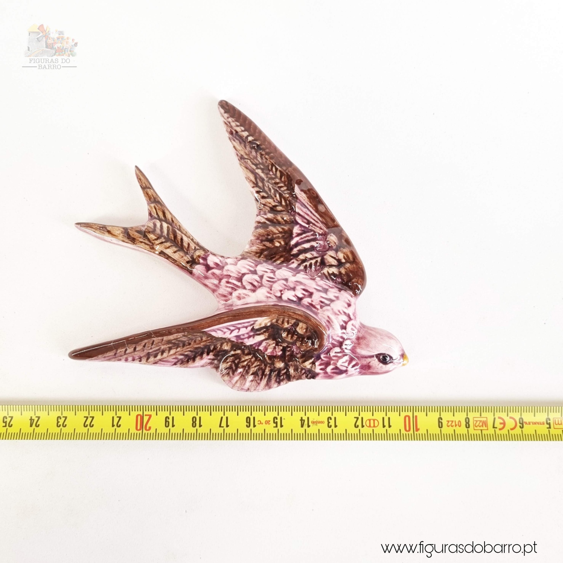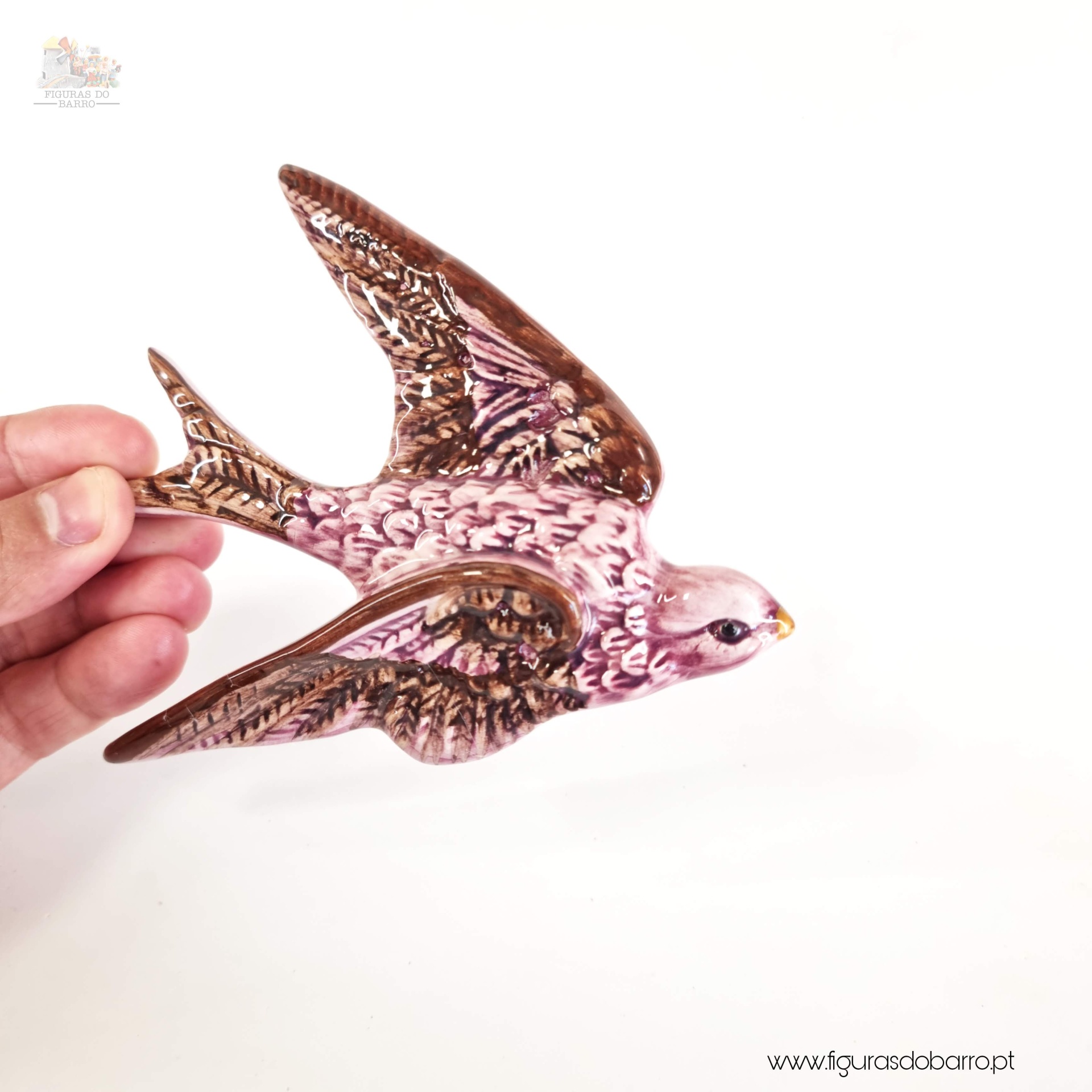 • Figura decorativa de pássaro em voo com cores castanhas e rosa