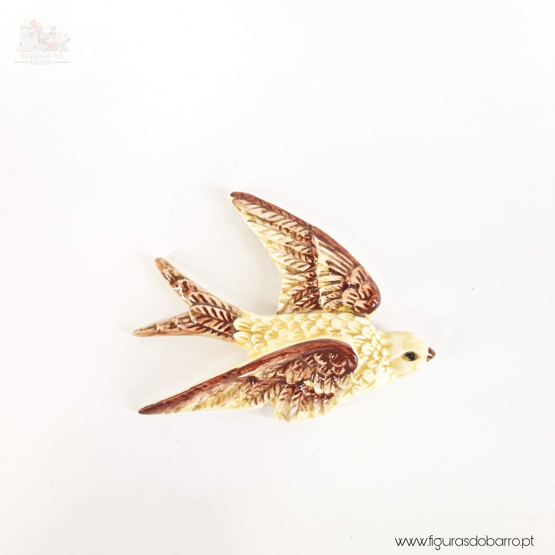 • Figura decorativa de andorinha castanha e creme sobre fundo branco