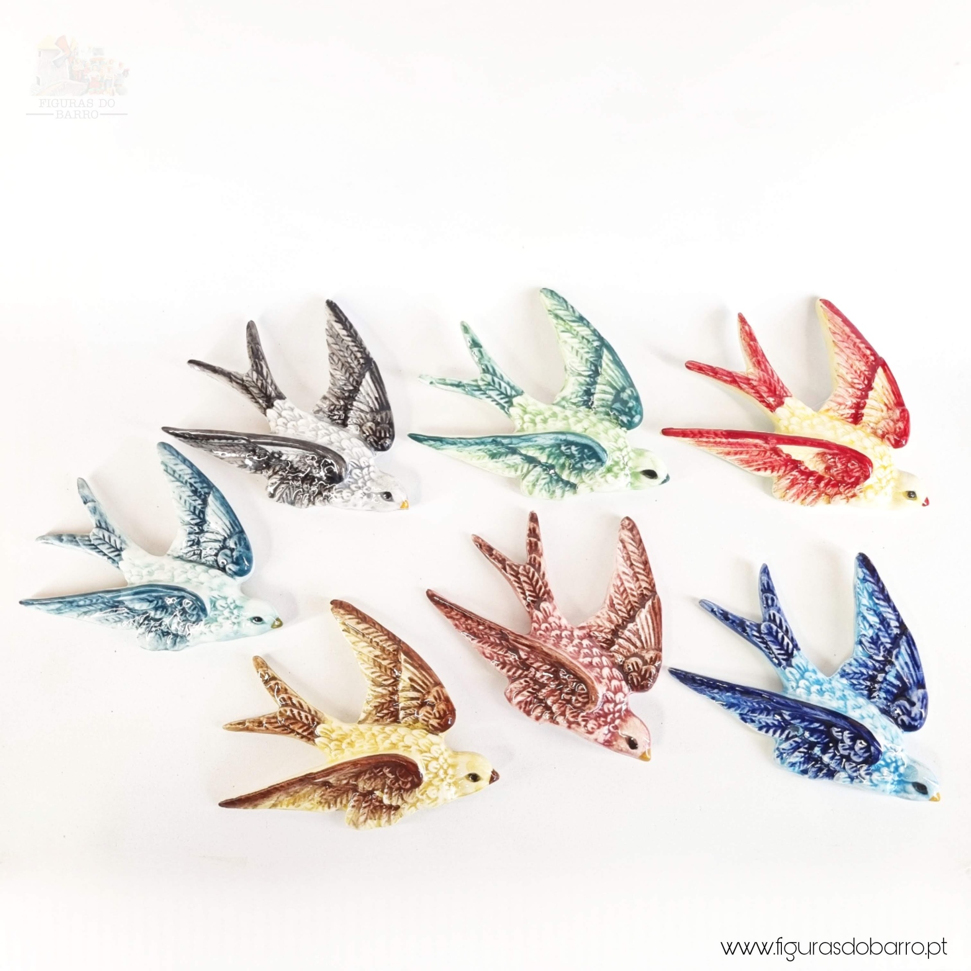 Andorinhas em cerâmica vidradas com várias cores e de alta qualidade, ideais para colocar na parede, pois têm uma abertura para pendurar na parede ou apoio.
