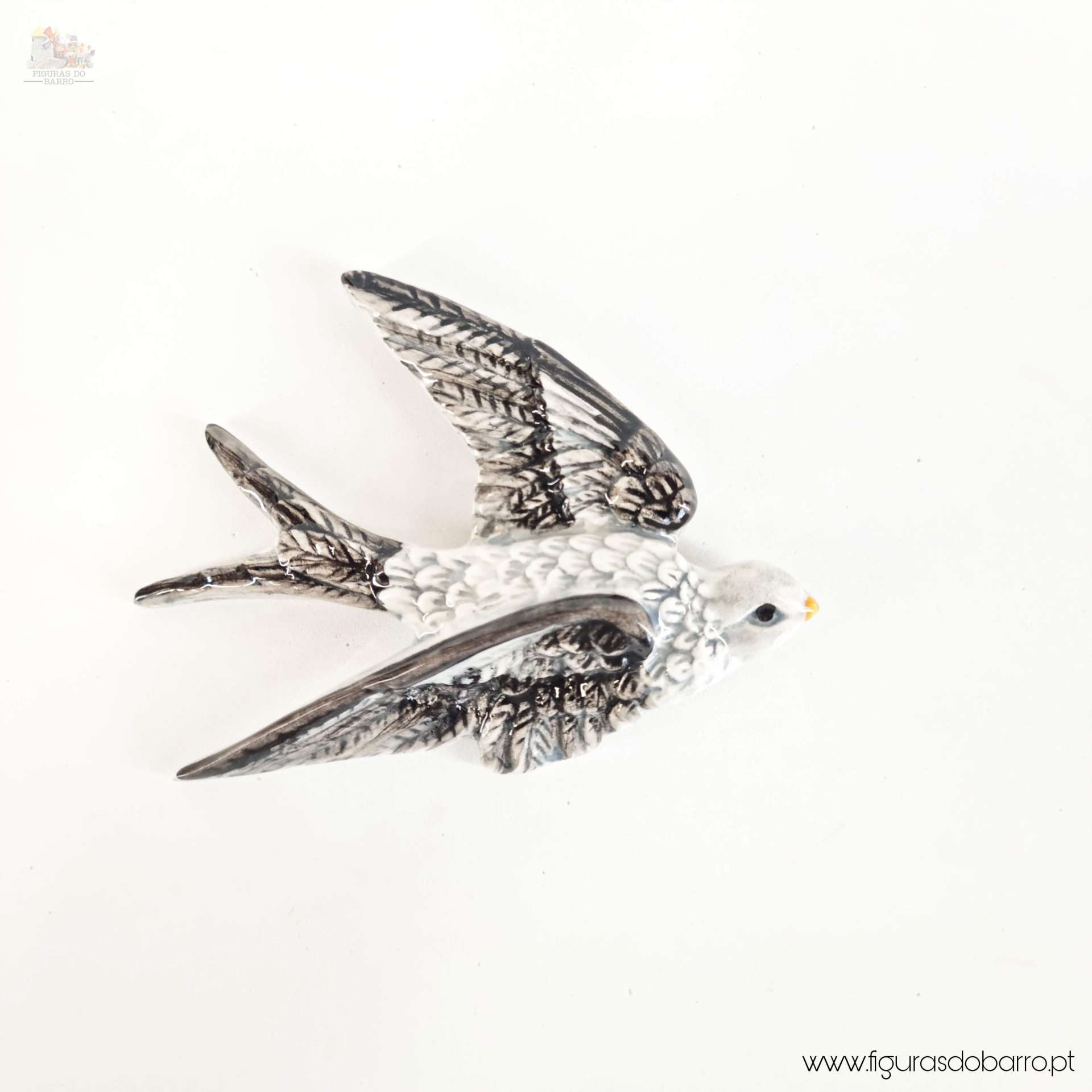 • Figura decorativa de pássaro em voo com asas cinzentas e corpo branco