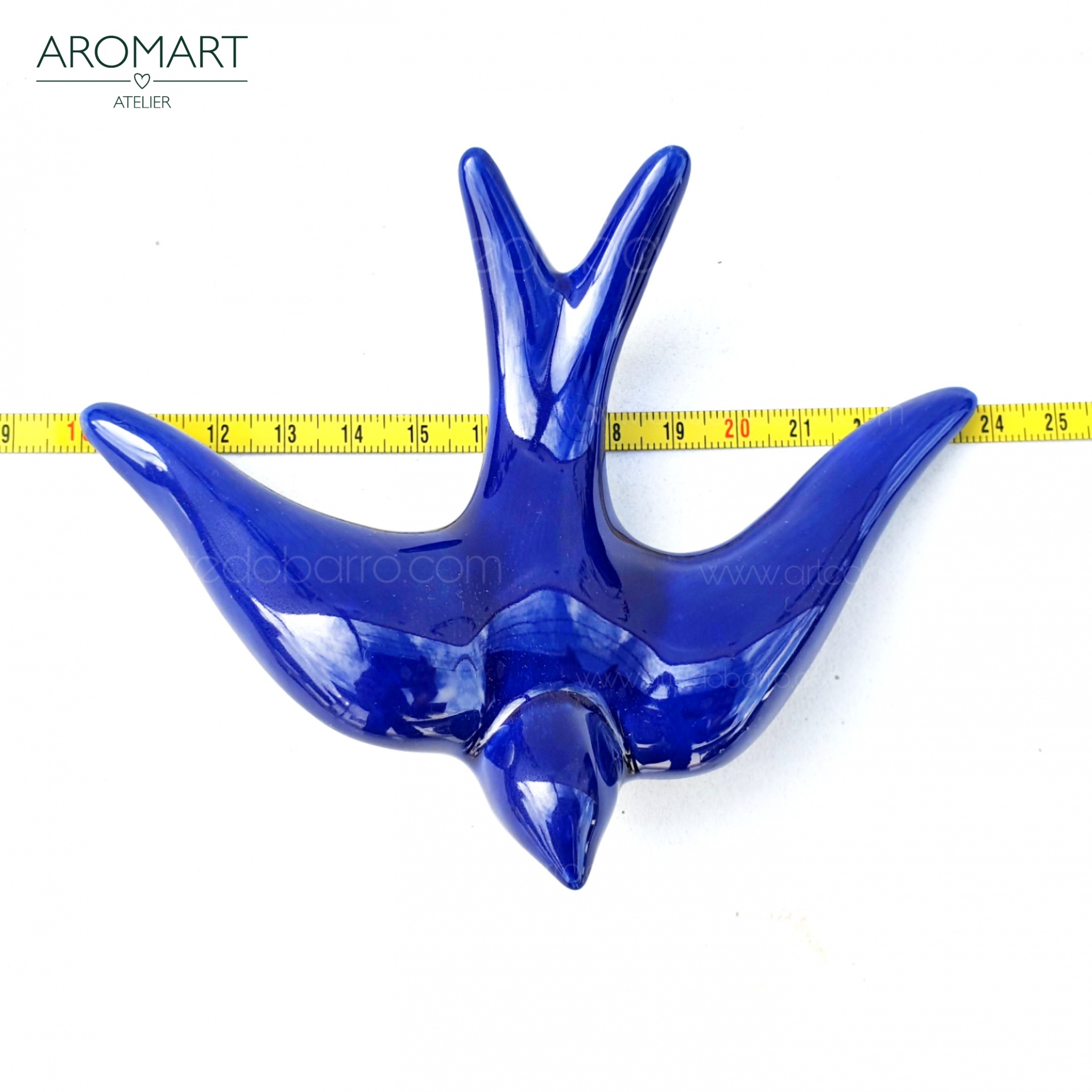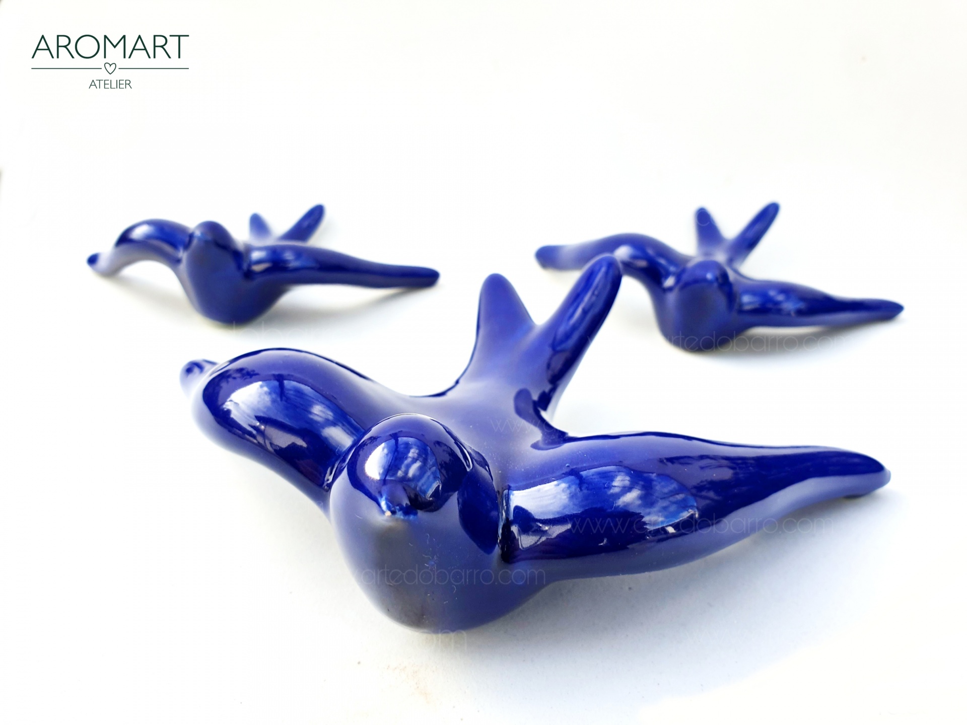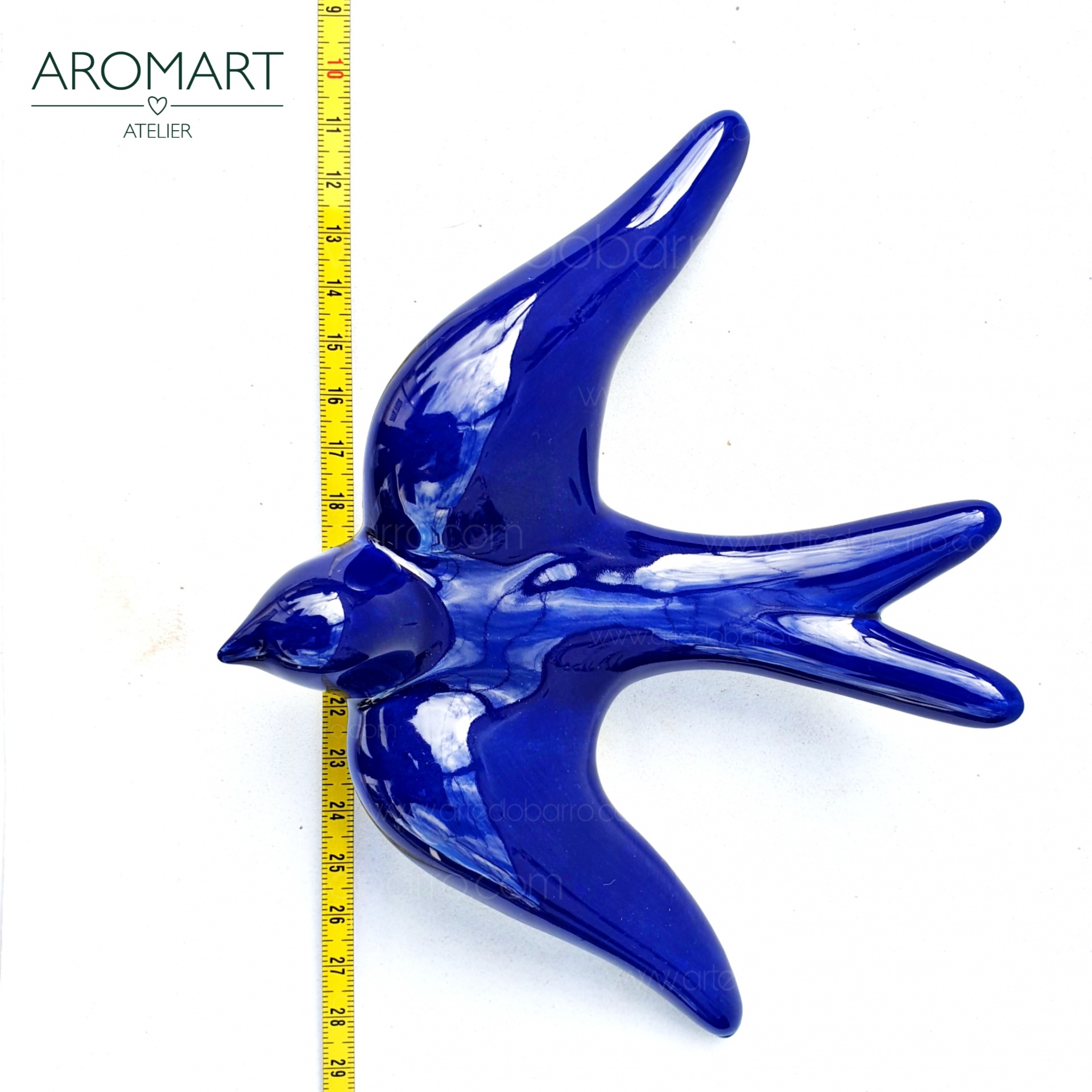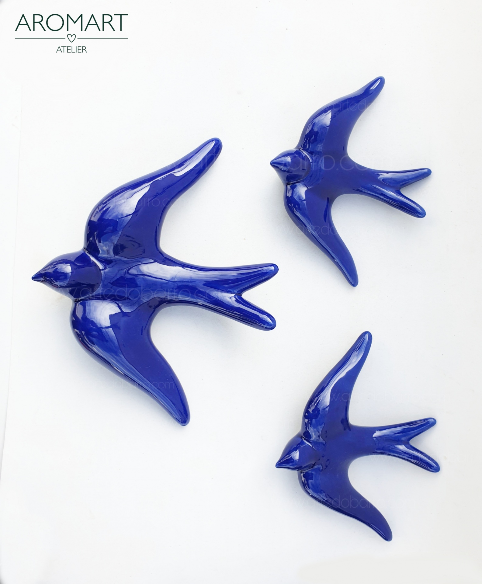 Conjunto 3 Andorinhas Vidradas Azul Escuro 15,00 € Desconto de %. IVA incluído. Partilhar Comprar Contactar 2 unidades em stock Conjunto de Três andorinhas de barro vidrado azul. Todas as andorinhas têm um orifício na parte inferior para que possam pendurar na parede. Peças de grande qualidade e muito resistentes ao tempo (são vidradas a alta temperatura e por isso não perdem a cor). PRODUTO TRADICIONAL PORTUGUÊS, Barcelos Conjunto de 3 andorinhas: 2 Médias:- Altura: 10cm- Largura: 14cm- Profundidade: 4cm- Peso: 0,50kg 1 Grande- Altura: 14cm- Largura: 19cm- Profundidade: 5cm- Peso: 0,124kg Marca Tradicionais Portuguesas® Tags andorinhasswallowsandorinhas portuguesasceramicaandorinhaandorinha de barroandorinha de ceramicaandorinha de paredeandorinhas de barroandorinhas amarelasandorinhas de paredeandorinhas para exteriorandorinhas vidradasgolondrinasrondiniSchwalben Características