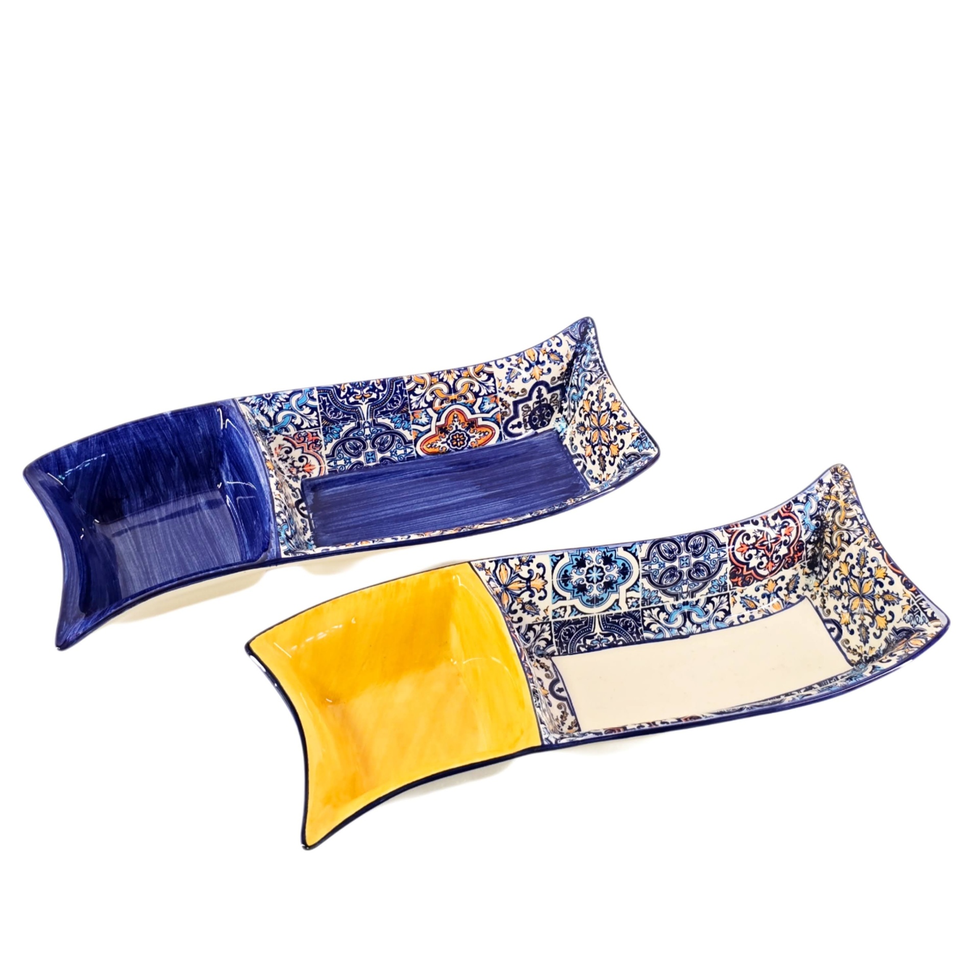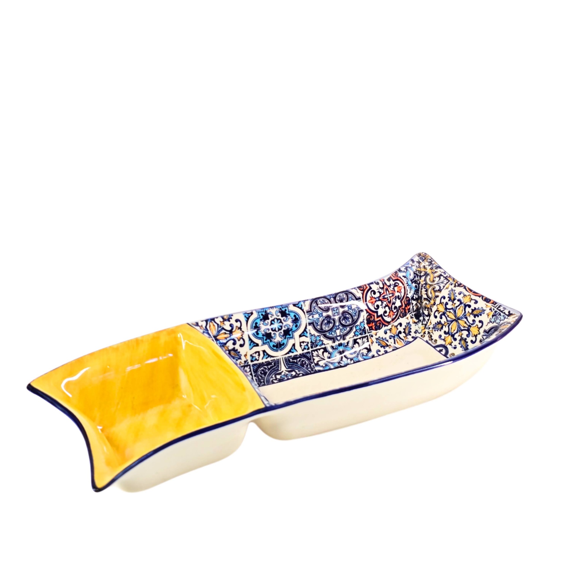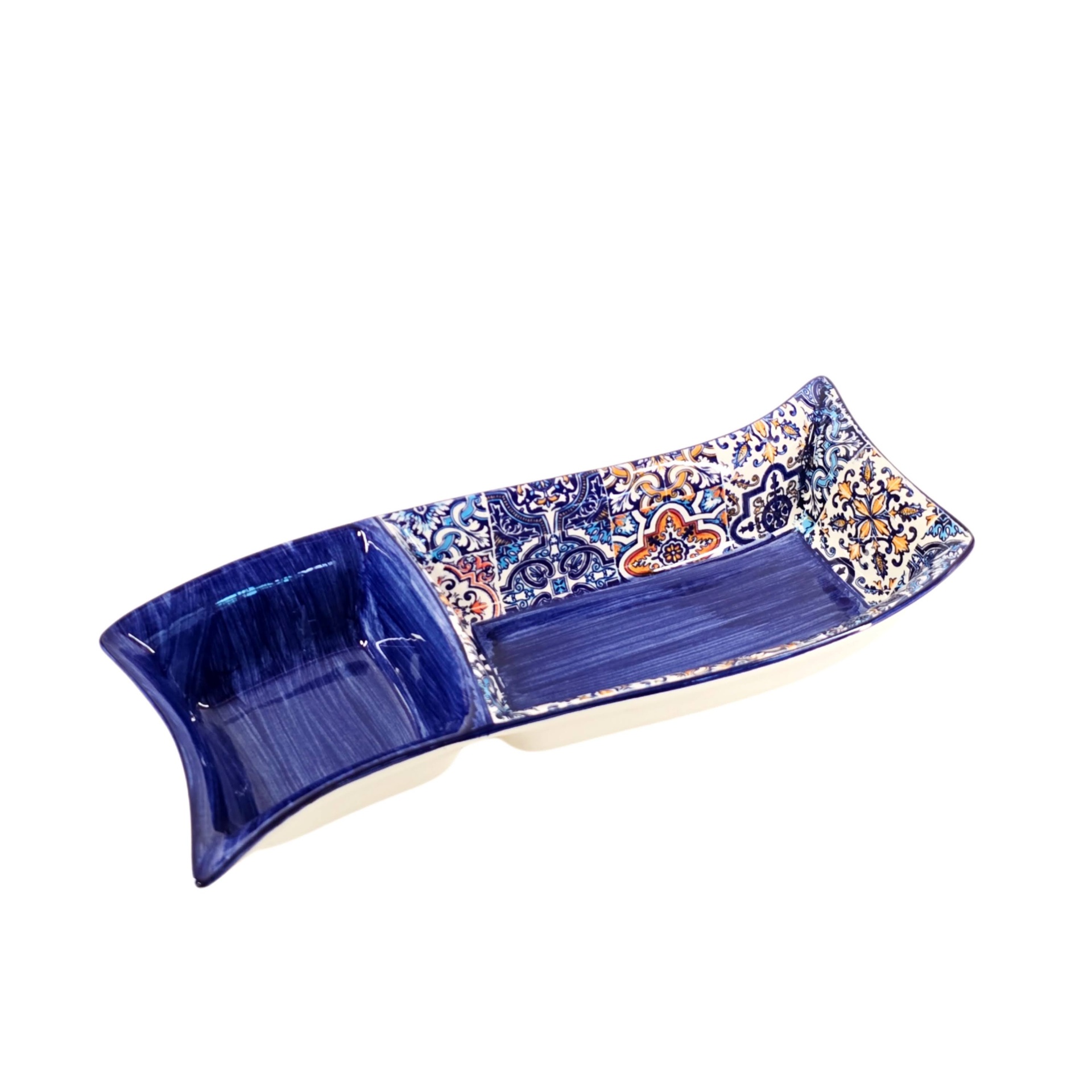 • Travessa retangular cerâmica com compartimentos e padrões coloridos