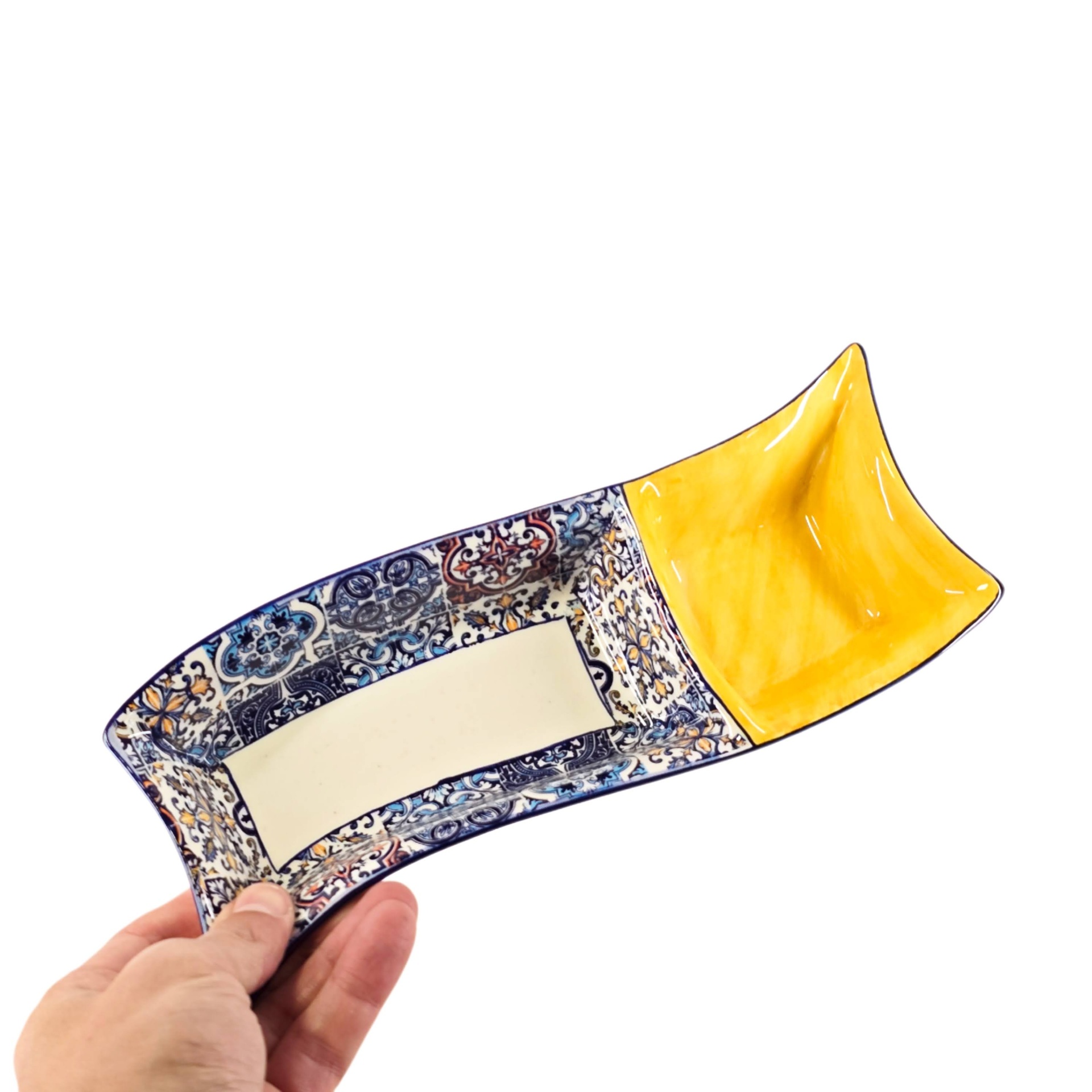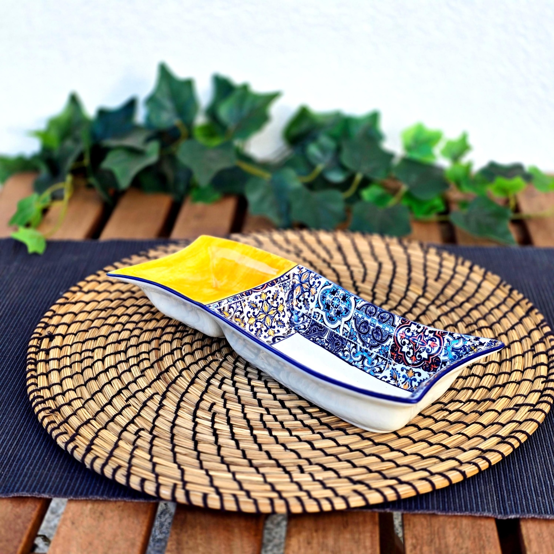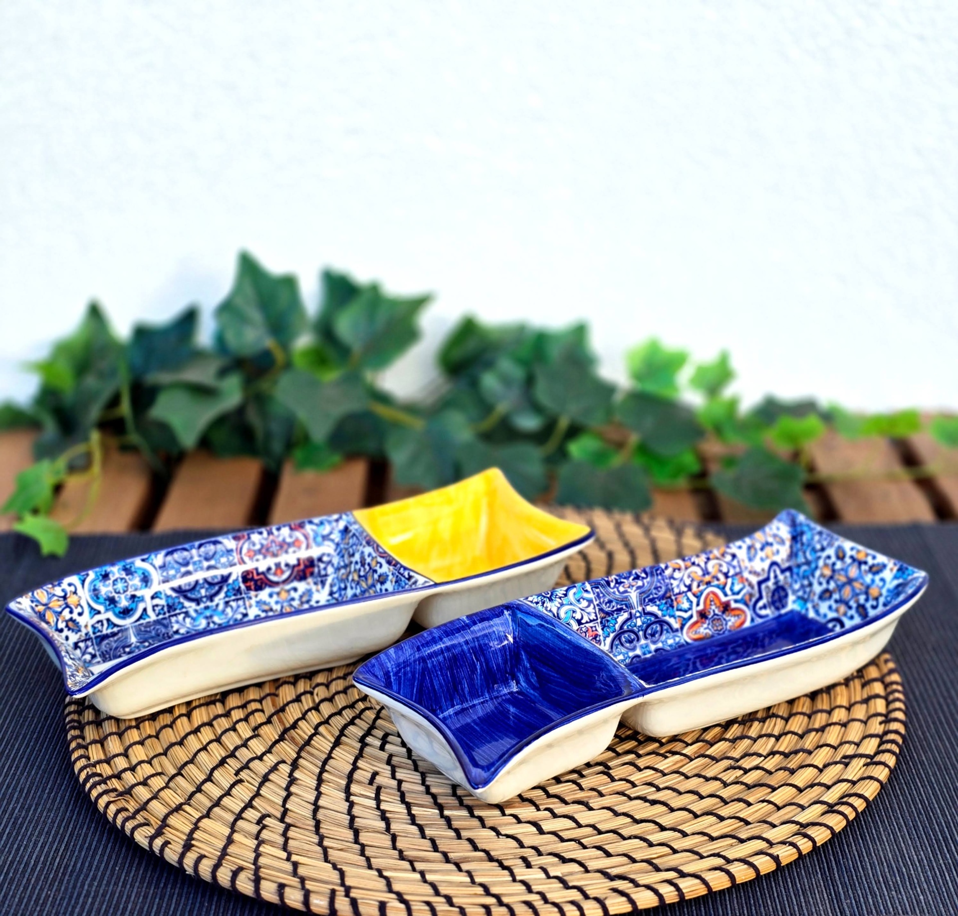 • Travessa retangular cerâmica com compartimentos e padrões coloridos