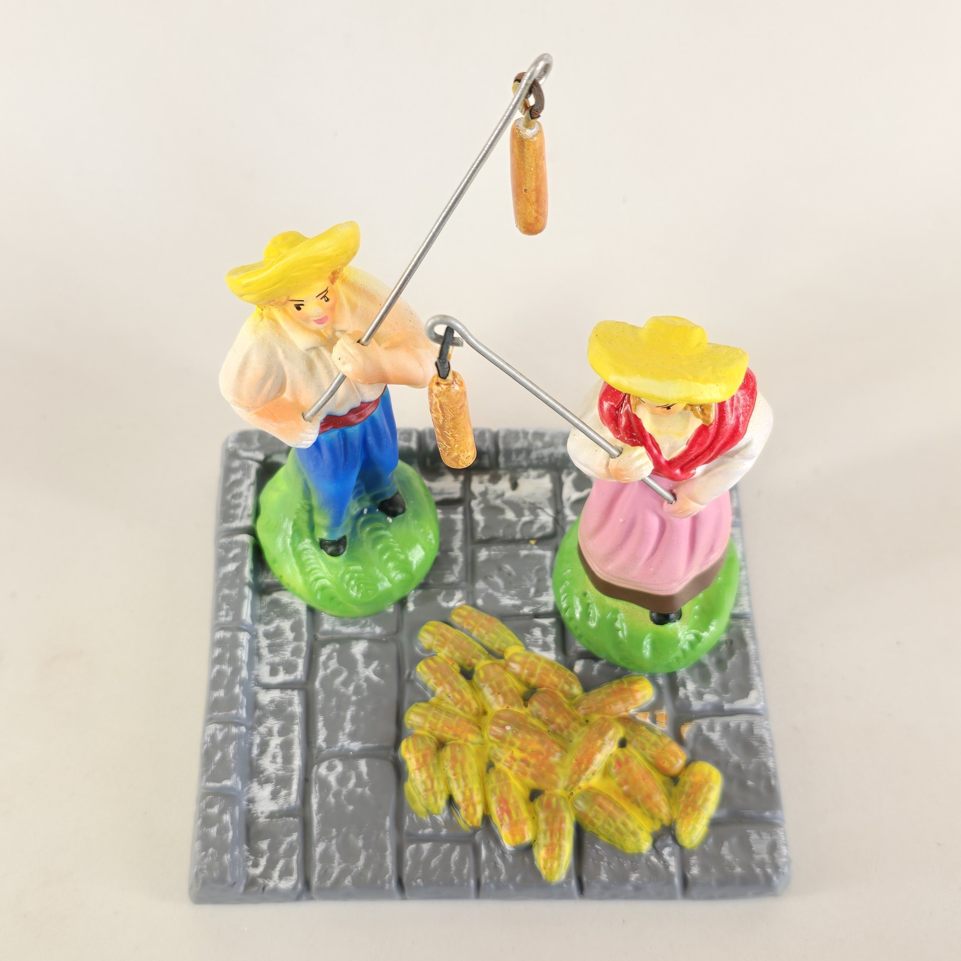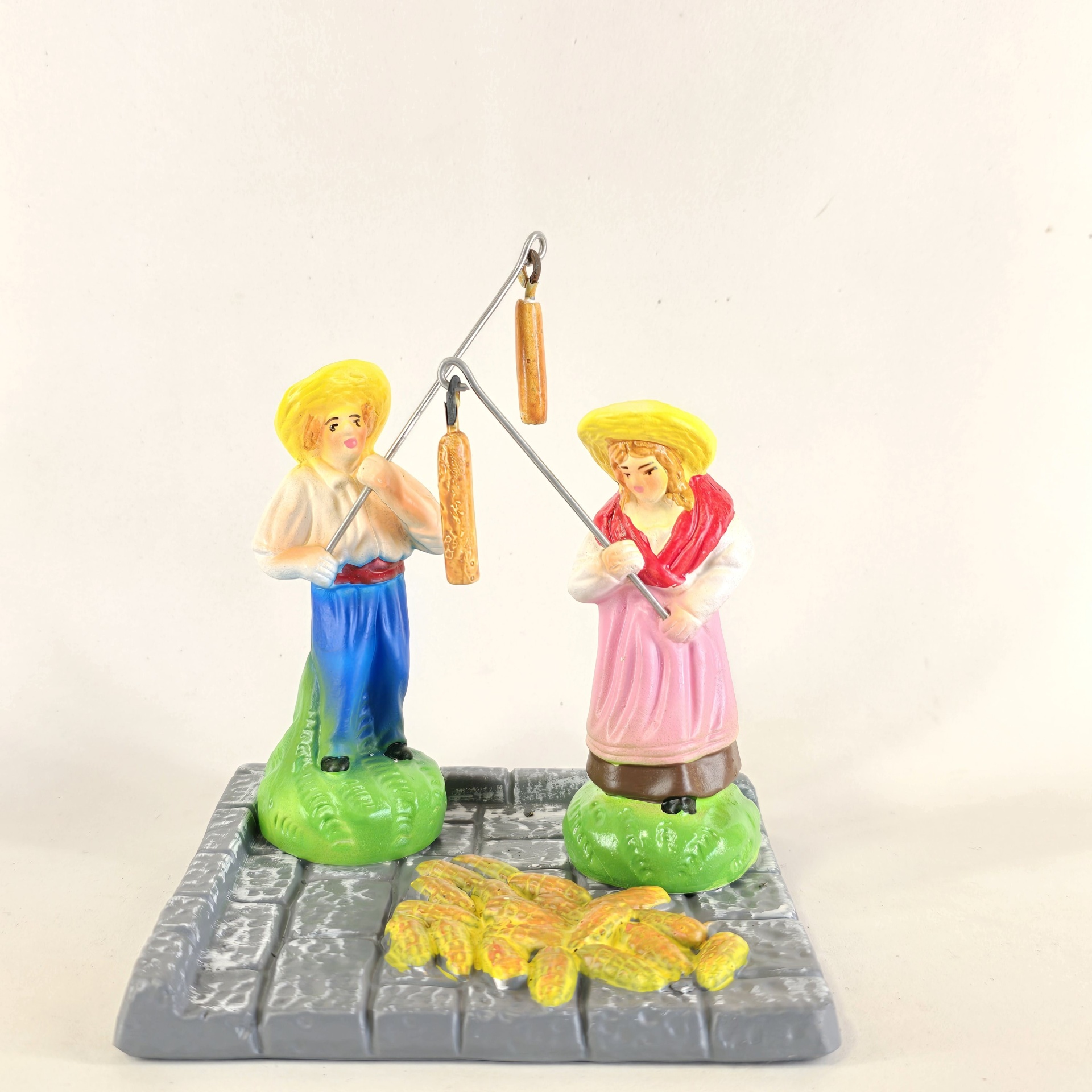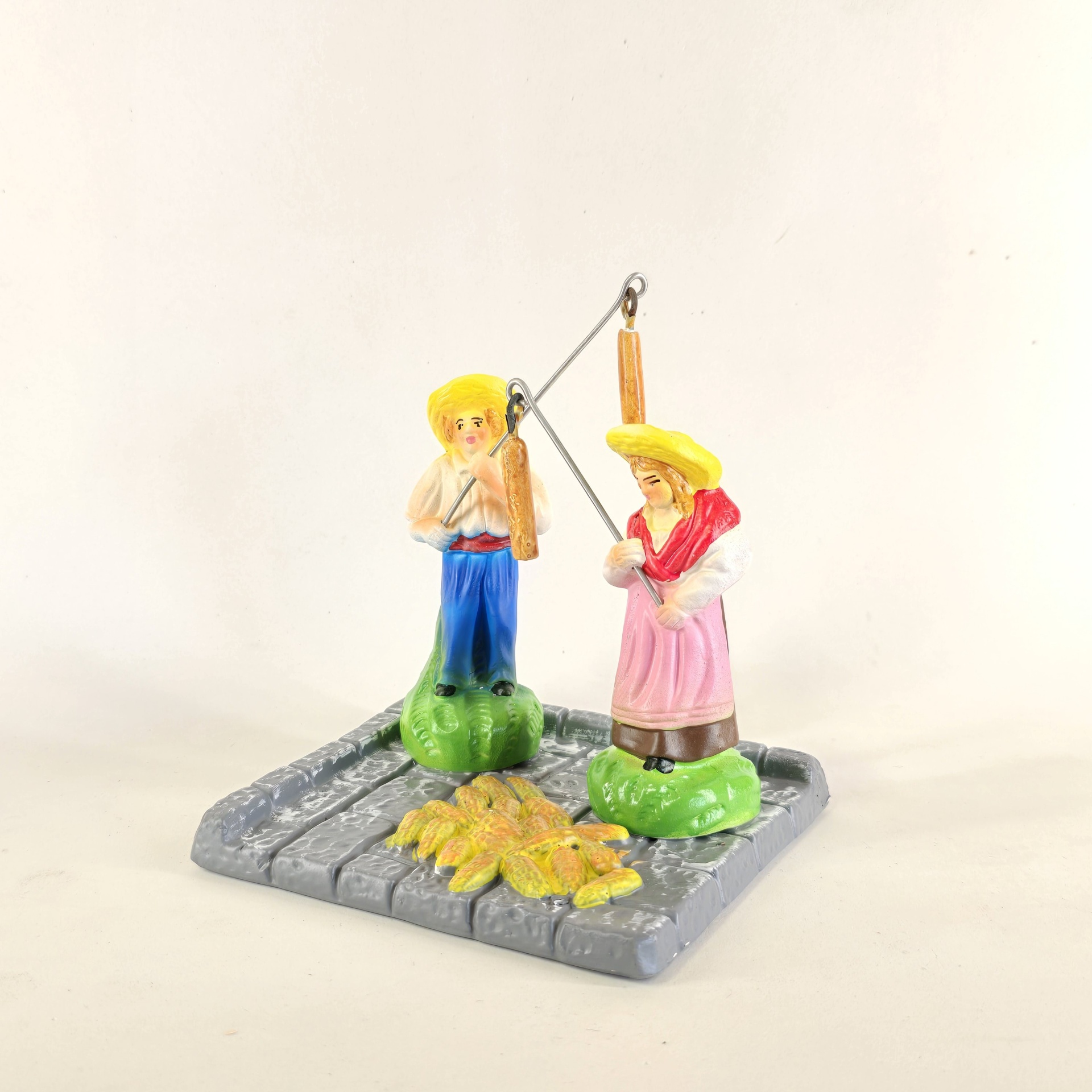 Casal a malhar o milho 55,00 € Desconto de %. IVA incluído. Partilhar O produto encontra-se sem stock. Figura da mulher e do homem a malhar o milho em cerâmica, ideal para completar a sua cascata de S. João. ----- (peças em cerâmica feitas de forma artesanal e pintadas à mão) ----- As peças em cerâmica, certificadas, são da autoria do Artesão João Macedo de Barcelos. Medidas: aproximadamente 14cm de altura. Ref. Interna: 368/368-B Marca Figuras do Barro® Tags cascatacascata de sao joaopresepio artesanalpresepio de barropresepio de ceramicahandmadeceramicceramicaceramicartClaymulherbancamulher a vender na bancamulher com bancavendedorasenhor de matosinhoscascata são joãosantos popularesMalharMilhoMalhar o milhoHomem a malhar o milhoMulher a malhar o milho Características