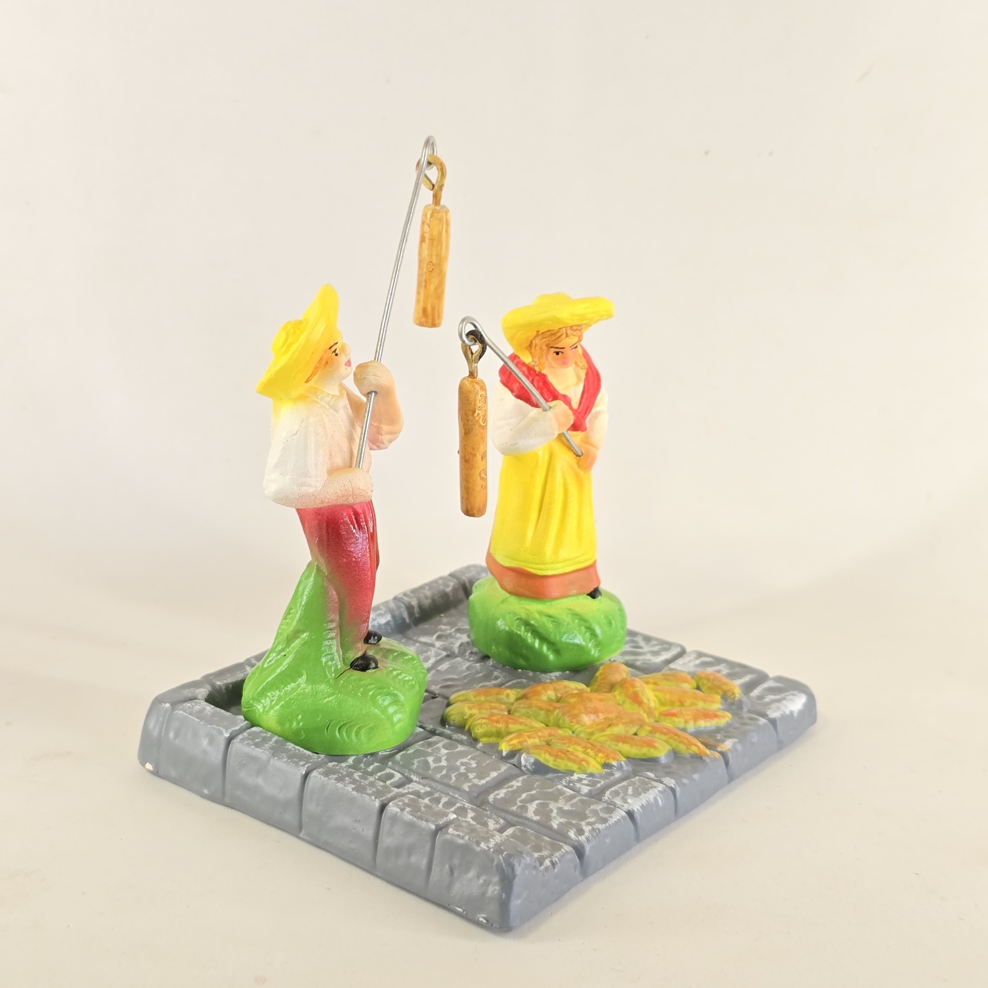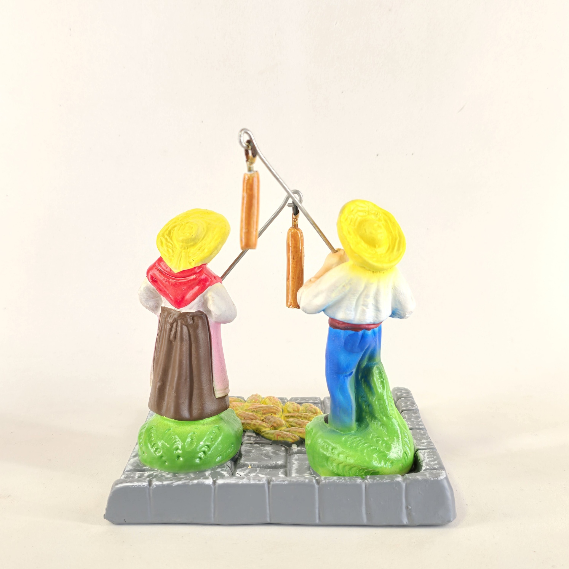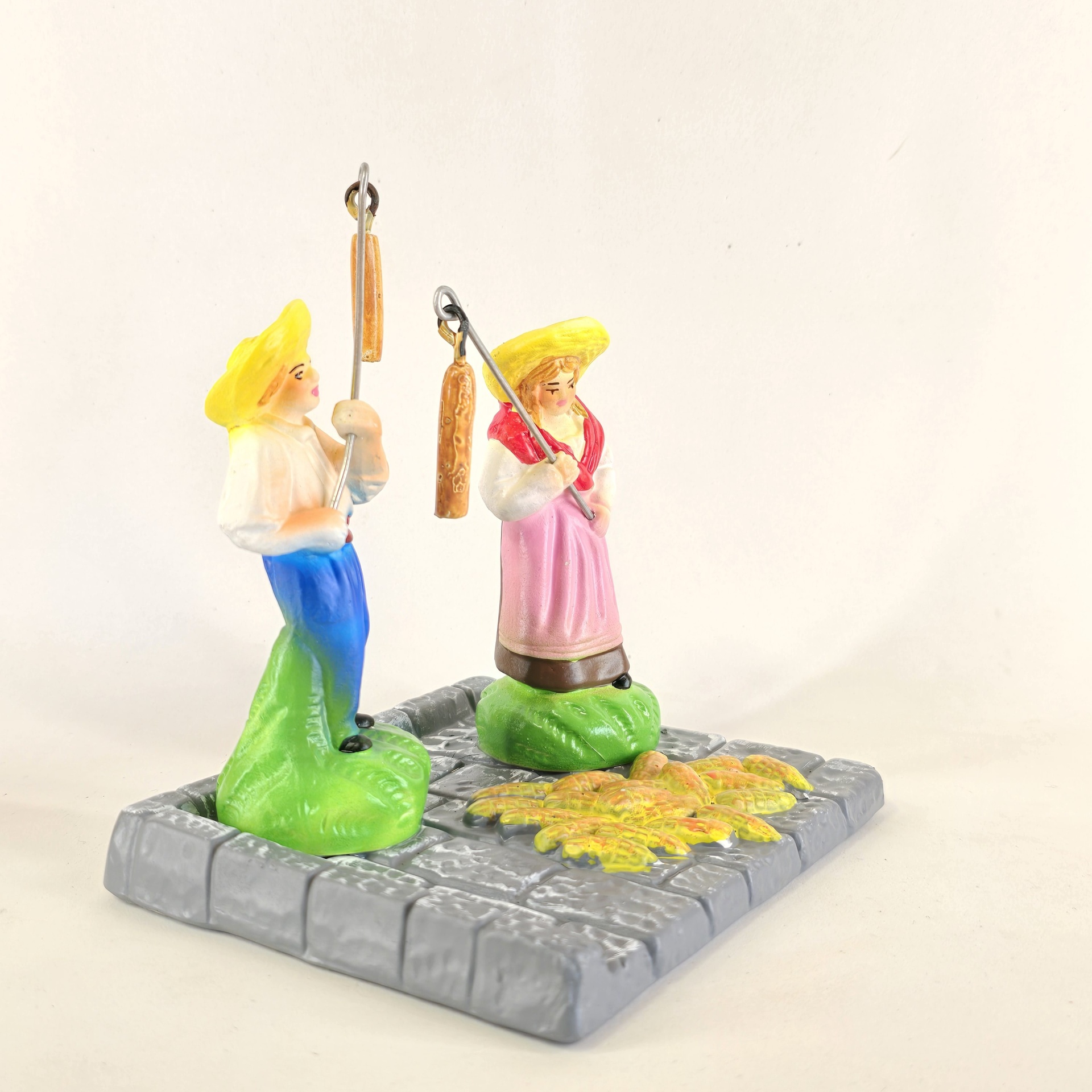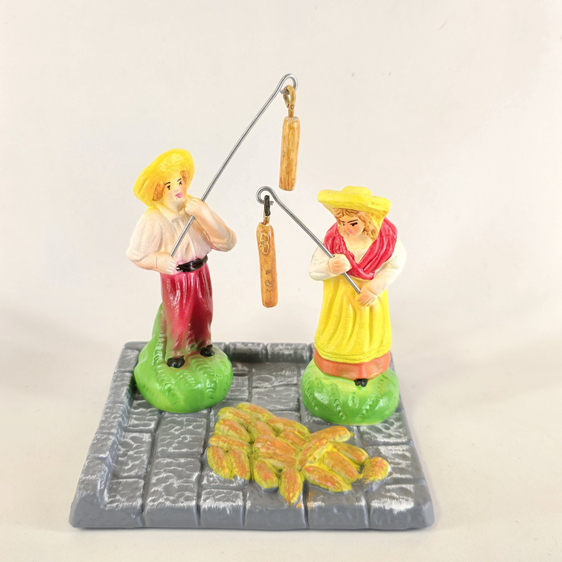 Casal a malhar o milho 55,00 € Desconto de %. IVA incluído. Partilhar O produto encontra-se sem stock. Figura da mulher e do homem a malhar o milho em cerâmica, ideal para completar a sua cascata de S. João. ----- (peças em cerâmica feitas de forma artesanal e pintadas à mão) ----- As peças em cerâmica, certificadas, são da autoria do Artesão João Macedo de Barcelos. Medidas: aproximadamente 14cm de altura. Ref. Interna: 368/368-B Marca Figuras do Barro® Tags cascatacascata de sao joaopresepio artesanalpresepio de barropresepio de ceramicahandmadeceramicceramicaceramicartClaymulherbancamulher a vender na bancamulher com bancavendedorasenhor de matosinhoscascata são joãosantos popularesMalharMilhoMalhar o milhoHomem a malhar o milhoMulher a malhar o milho Características
