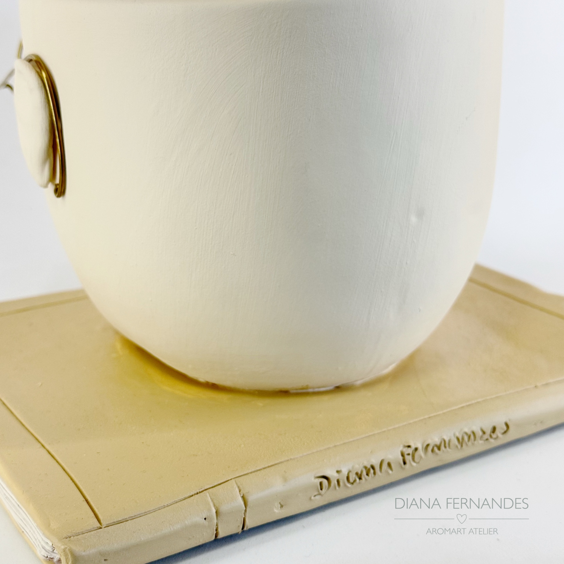 • Vaso branco sobre base amarela com assinatura Diana Fernandes