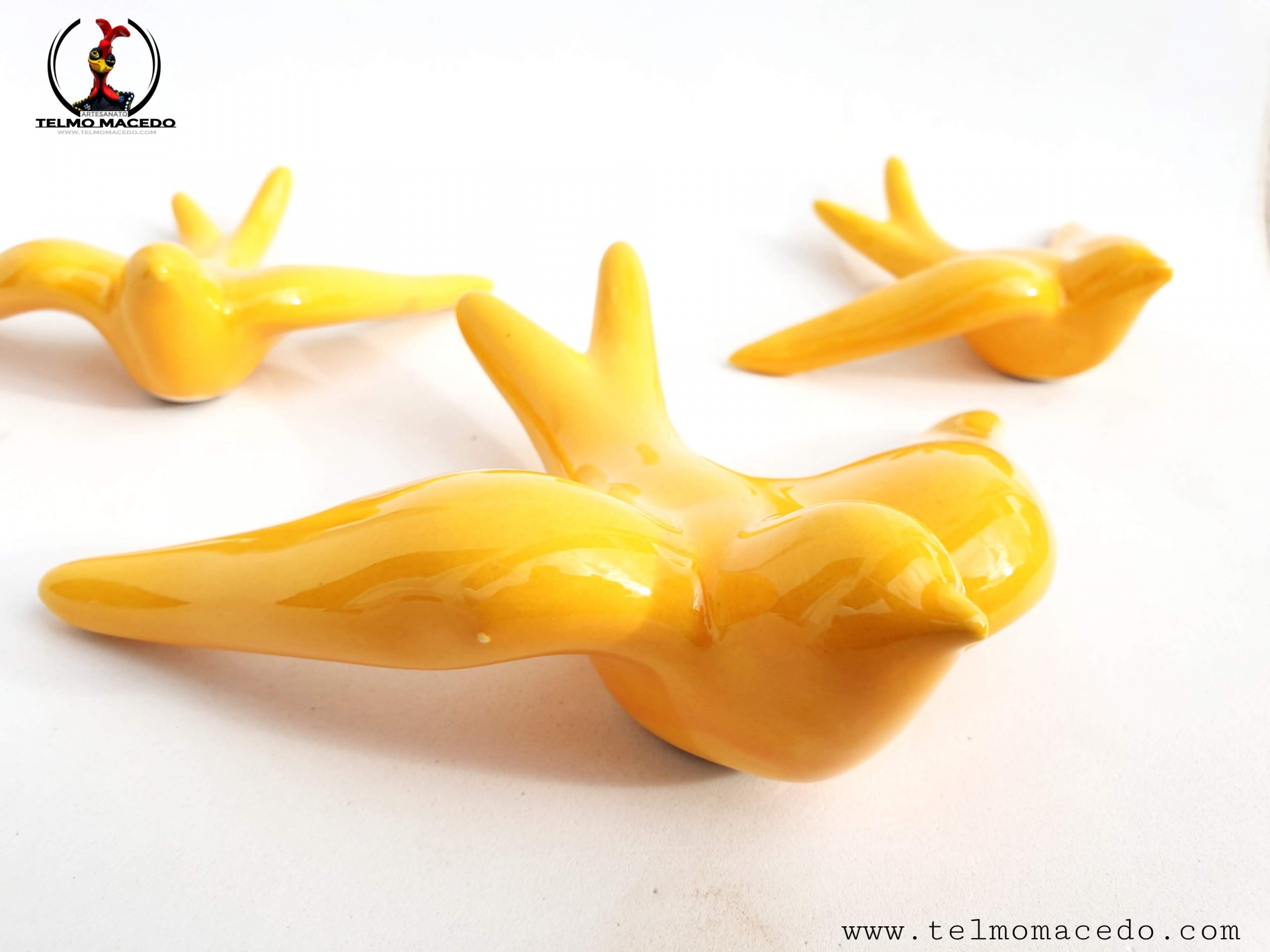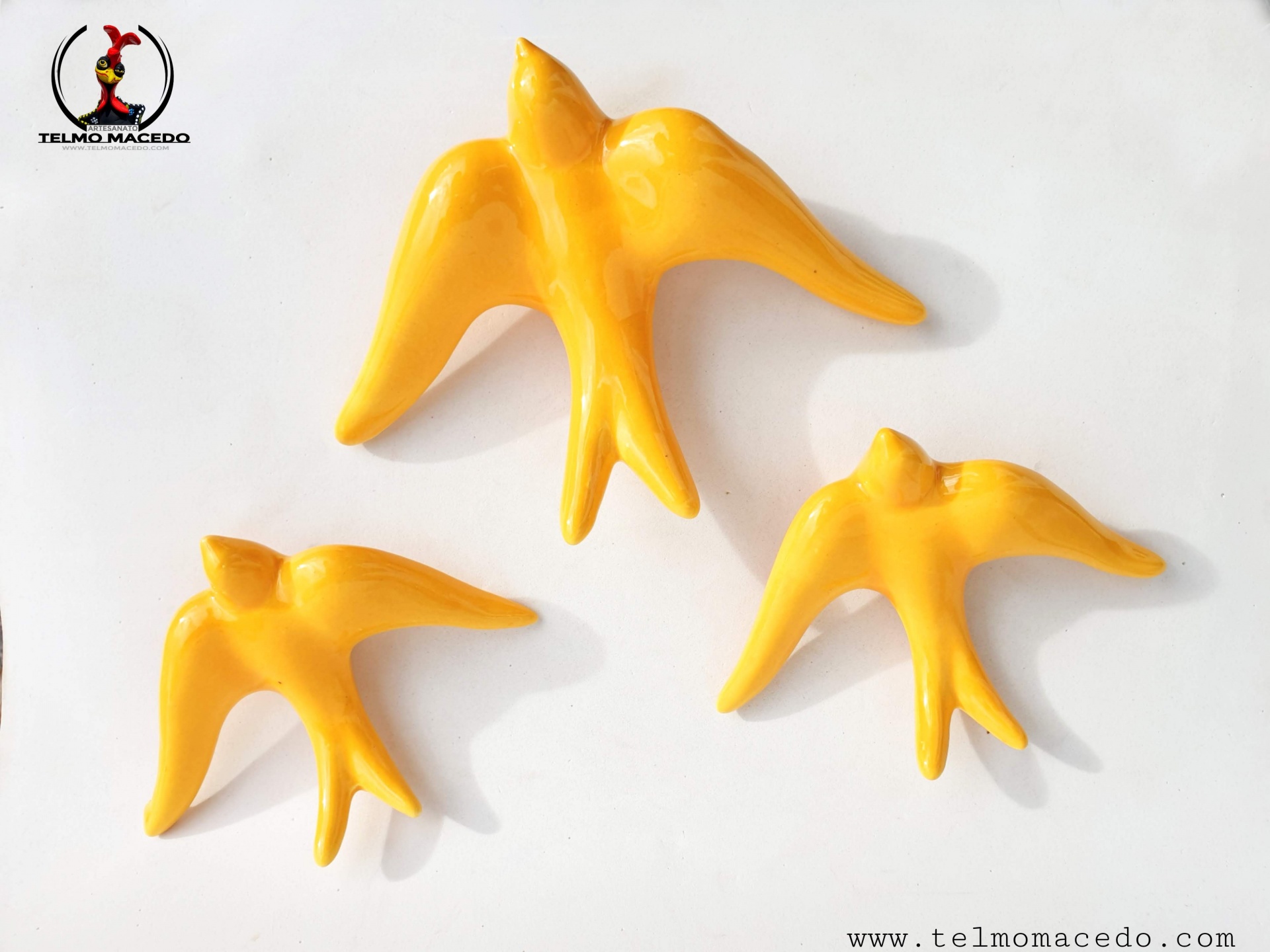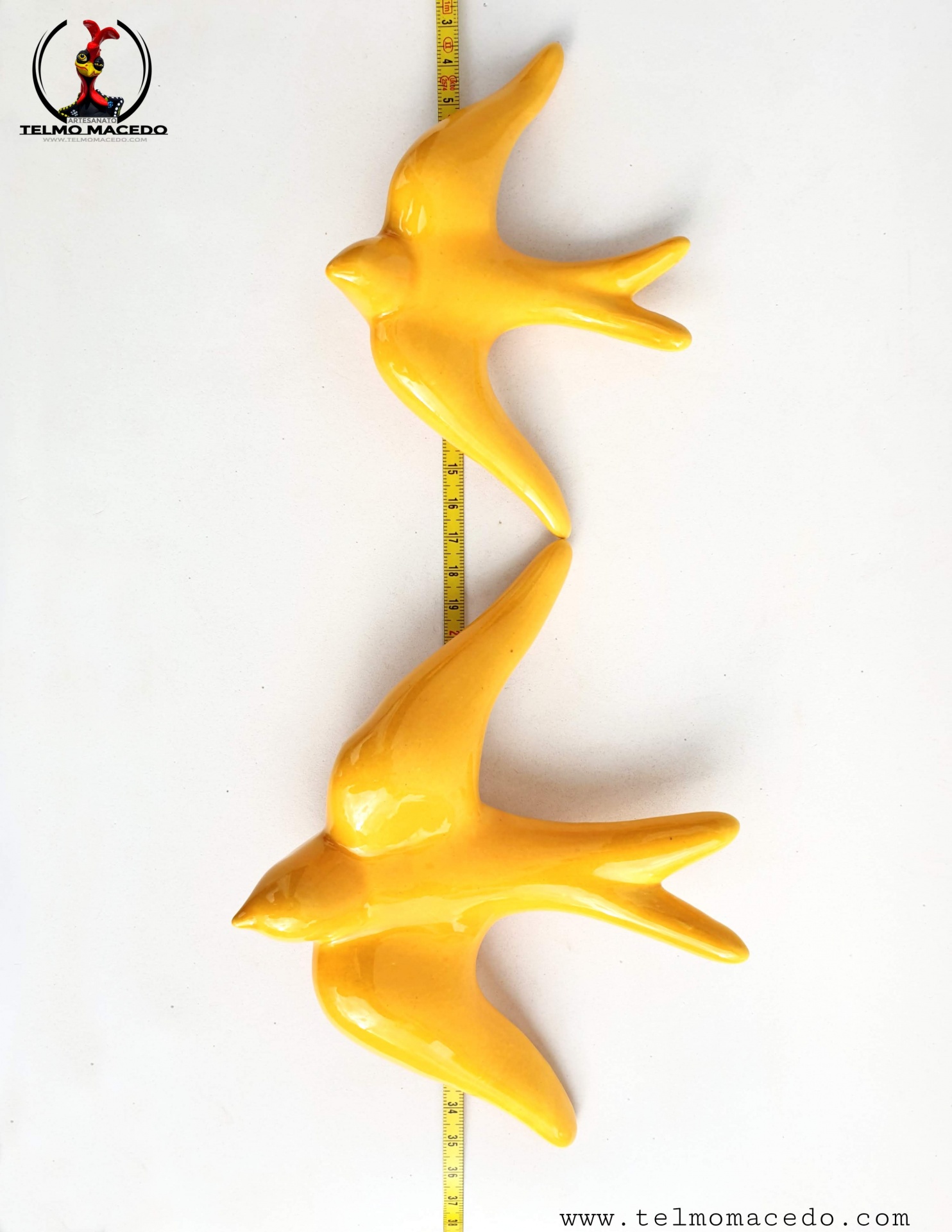 Conjunto 3 Andorinhas Vidradas Amarelas 15,00 € Desconto de %. IVA incluído. Partilhar O produto encontra-se sem stock. Conjunto de Três andorinhas de barro vidrado amarelo. Todas as andorinhas têm um orifício na parte inferior para que possam pendurar na parede. Peças de grande qualidade e muito resistentes ao tempo (são vidradas a alta temperatura e por isso não perdem a cor). PRODUTO TRADICIONAL PORTUGUÊS, Barcelos Conjunto de 3 andorinhas: 2 Médias:- Altura: 10cm- Largura: 14cm- Profundidade: 4cm- Peso: 0,50kg 1 Grande- Altura: 14cm- Largura: 19cm- Profundidade: 5cm- Peso: 0,124kg Marca Tradicionais Portuguesas® Tags swallowswallowsswallows for outdoorsandorinhaandorinha de barroandorinha de ceramicaandorinha de paredeandorinhas de barroandorinhas de paredeandorinhas para exteriorandorinhas vidradasandorinhas portuguesasSchwalbenrondinigolondrinas Características