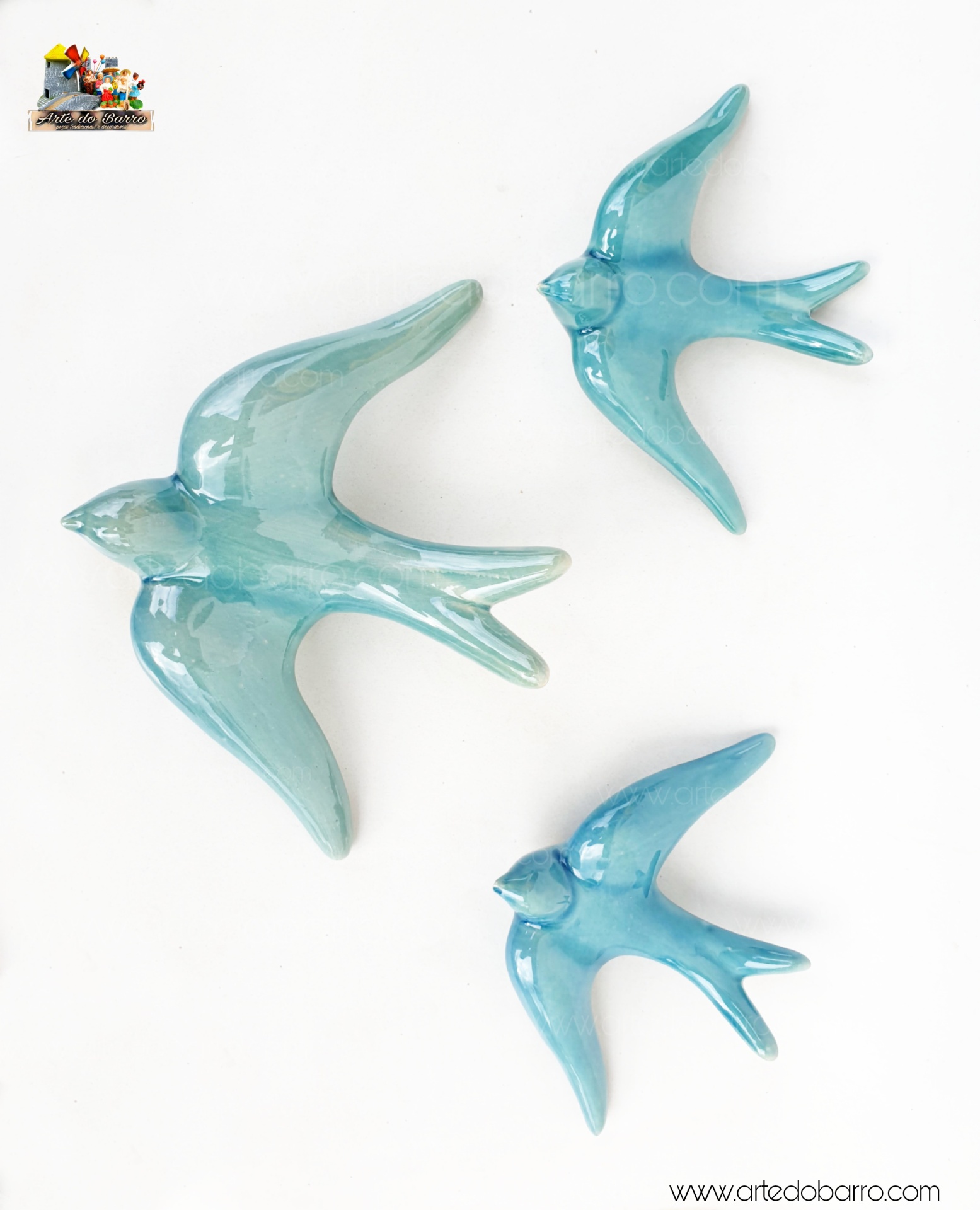 Conjunto 3 Andorinhas Azul bebé 15,00 € Desconto de %. IVA incluído. Partilhar O produto encontra-se sem stock. Conjunto de Três andorinhas de barro vidrado azul bebé. Todas as andorinhas têm um orifício na parte inferior para que possam pendurar na parede. Peças de grande qualidade e muito resistentes ao tempo (são vidradas a alta temperatura e por isso não perdem a cor). PRODUTO TRADICIONAL PORTUGUÊS, Barcelos Conjunto de 3 andorinhas: 2 Médias:- Altura: 10cm- Largura: 14cm- Profundidade: 4cm- Peso: 0,50kg 1 Grande- Altura: 14cm- Largura: 19cm- Profundidade: 5cm- Peso: 0,124kg Marca Tradicionais Portuguesas® Tags swallowswallowsswallows for outdoorsandorinhaandorinha de barroandorinha de ceramicaandorinha de paredeandorinhas de barroandorinhas de paredeandorinhas para exteriorandorinhas vidradasandorinhas portuguesasSchwalbenrondinigolondrinas Características