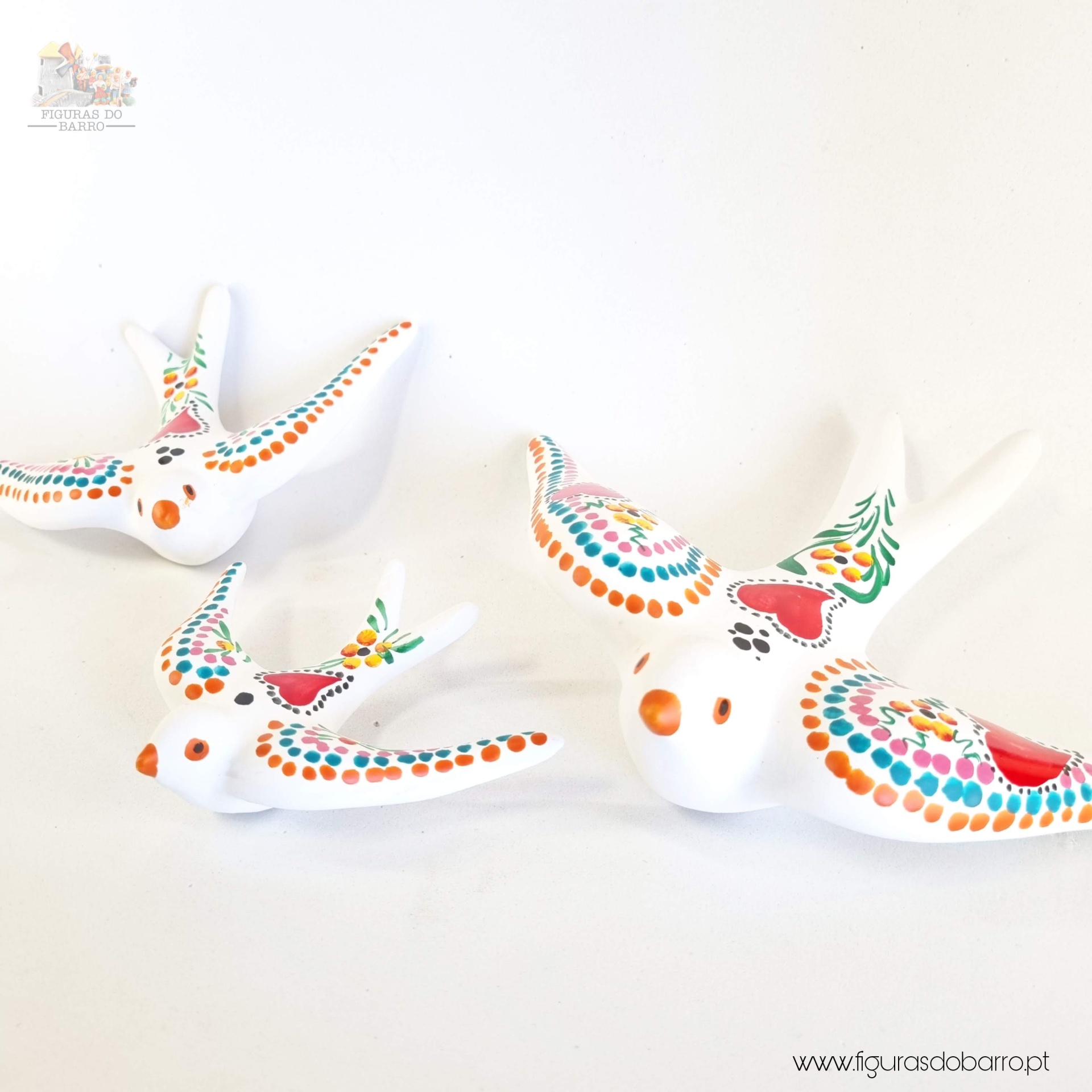 Conjunto de 3 andorinhas com cores tradicionais - Brancas 22,50 € Desconto de %. IVA incluído. Partilhar Comprar Contactar 1 unidades em stock Conjunto de três andorinhas de barro pintadas com as cores tradicionais do galo de Barcelos. Todas as andorinhas têm um orifício na parte inferior para que possam pendurar na parede. Peças de grande qualidade. PRODUTO TRADICIONAL PORTUGUÊS, Barcelos Conjunto de 3 andorinhas: 1 Pequena: -Altura: 7,5cm-Largura: 10,5cm-Profundidade: 2,5cm-Peso: 0.40kg 1 Médias:- Altura: 10cm- Largura: 14cm- Profundidade: 4cm- Peso: 0,50kg 1 Grande- Altura: 14cm- Largura: 19cm- Profundidade: 5cm- Peso: 0,124kg Marca Tradicionais Portuguesas® Tags andorinha de ceramicaandorinha de paredeandorinhasandorinhas portuguesasandorinhas de barroartesanato de cerâmicaandorinha de barroswallowswallowsswallows for outdoorsgoldenceramicceramicartgolondrinasLenços dos namoradoscores galo de barcelosAvalerondini Características
