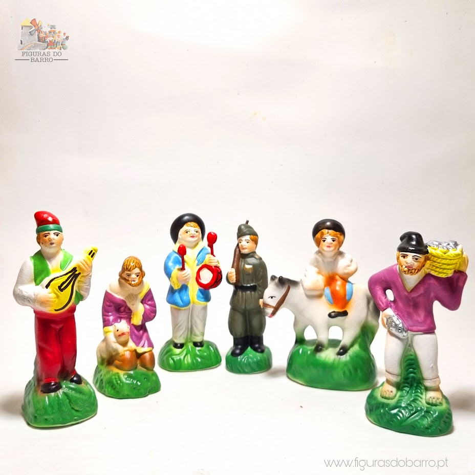 O conjunto é composto por 6 peças individuais em cerâmica (músicos, pescadores, militares, etc.), ideal para completar o seu presépio ou as cascatas de São João.