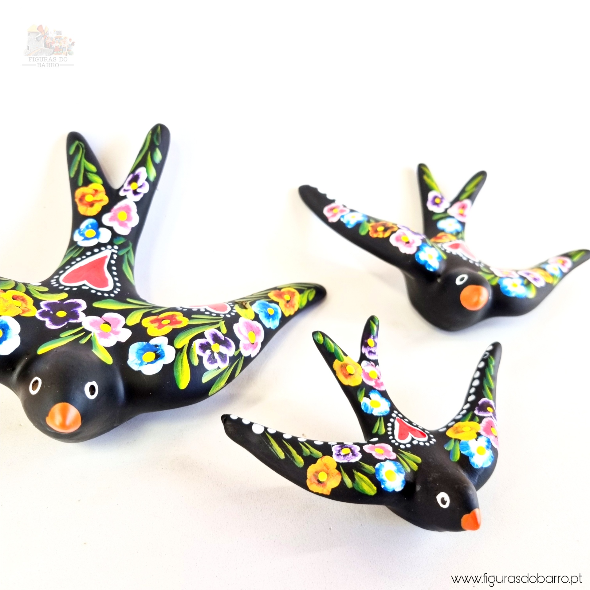 Conjunto de 3 andorinhas com cores tradicionais - Pretas 22,50 € Desconto de %. IVA incluído. Partilhar Comprar Contactar 3 unidades em stock Conjunto de três andorinhas de barro pintadas com as cores tradicionais do galo de Barcelos. Todas as andorinhas têm um orifício na parte inferior para que possam pendurar na parede. Peças de grande qualidade. PRODUTO TRADICIONAL PORTUGUÊS, Barcelos Conjunto de 3 andorinhas: 1 Pequena: -Altura: 7,5cm-Largura: 10,5cm-Profundidade: 2,5cm-Peso: 0.40kg 1 Médias:- Altura: 10cm- Largura: 14cm- Profundidade: 4cm- Peso: 0,50kg 1 Grande- Altura: 14cm- Largura: 19cm- Profundidade: 5cm- Peso: 0,124kg Marca Tradicionais Portuguesas® Tags andorinha de ceramicaandorinha de paredeandorinhasandorinhas portuguesasandorinhas de barroartesanato de cerâmicaandorinha de barroswallowswallowsswallows for outdoorsgoldenceramicceramicartgolondrinasLenços dos namoradoscores galo de barcelos Características