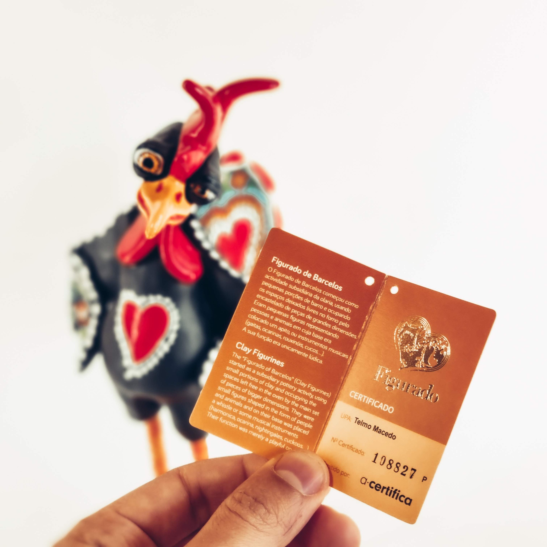 Galo de Barcelos Artesanal Telmo Macedo - 27cm 37,50 € Desconto de %. IVA incluído. Partilhar O produto encontra-se sem stock. Galo de cerâmica (barro) feito e pintado à mão pelo Artesão Telmo Macedo Arte Portuguesa. As figuras são registadas e reconhecidas como figurado de Barcelos pela entidade A. Certifica, Lda. São peças únicas, feitas e pintadas à mão (não existe nenhuma igual à outra). Medidas: aproximadamente 27cm de altura. Marca TelmoMacedoArtista® Tags galogalo artesanalgalo de barcelosgalo de barrogalo de ceramicagalo de portugalgalo iman artesanalgalo tradicionalgalosgalo portuguesgalo em barro feito a maoroosterrooster handmadecoqgalloClayceramicaceramicartartesão Características