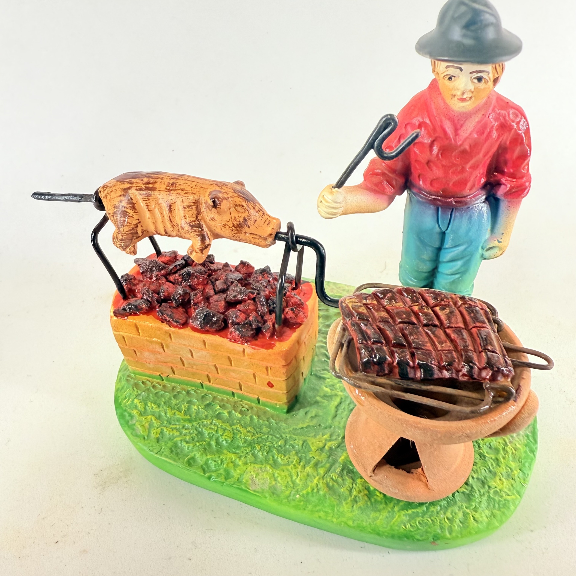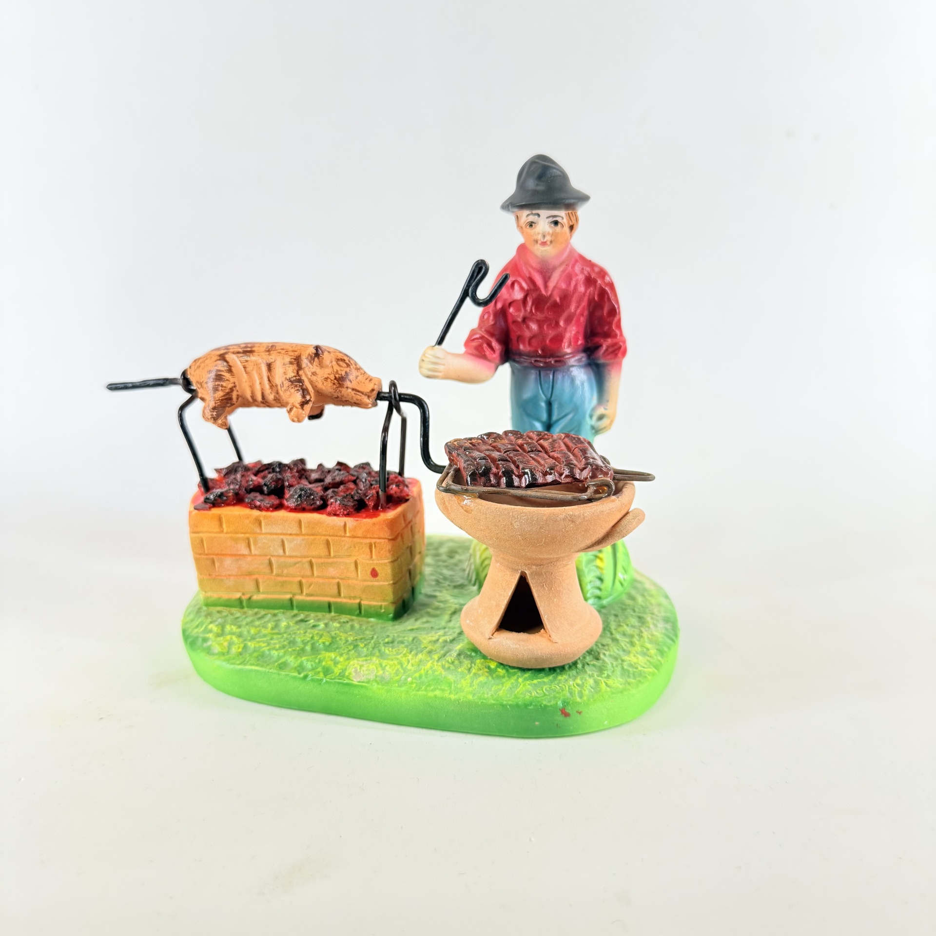 Homem Assador de Leitão 55,00 € Desconto de %. IVA incluído. Partilhar Cor calças Azul Comprar Contactar 3 unidades em stock Figura do homem com fogareiro assar leitão, em cerâmica, ideal para completar a sua cascata de S. João. ----- (peças em cerâmica feitas de forma artesanal e pintadas à mão) ----- As peças em cerâmica, certificadas, são da autoria do Artesão João Macedo de Barcelos. Medidas: aproximadamente 14cm de altura. Ref. Interna: 563 Marca Figuras do Barro® Tags cascatacascata de sao joaopresepio artesanalpresepio de barropresepio de ceramicahandmadeceramicceramicaceramicartClaymulherbancamulher a vender na bancamulher com bancavendedorasenhor de matosinhoscascata sao joaninacascata são joãosantos popularesHomem assar leitãohomem assarFogareiroLeitão Características