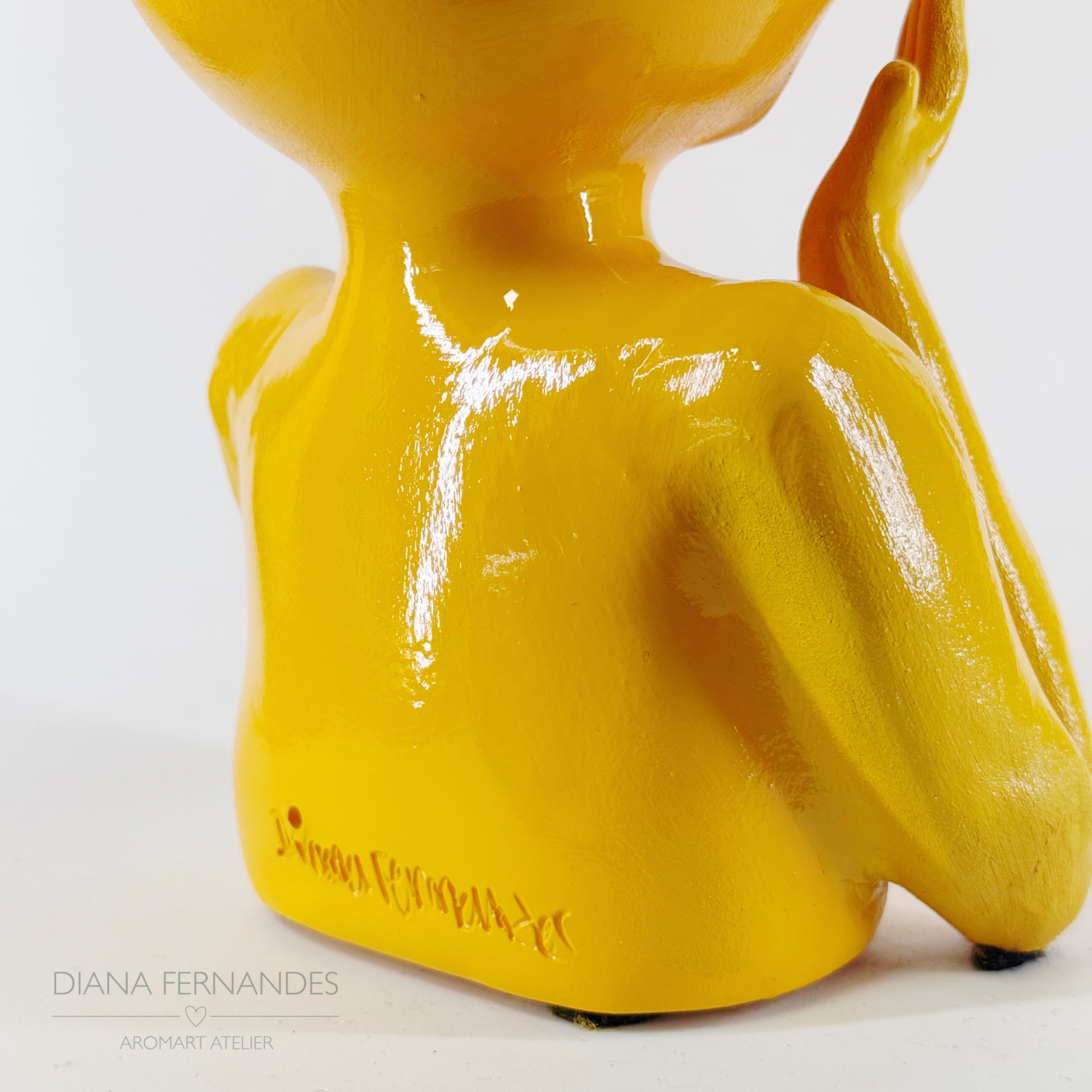 • Vaso decorativo amarelo em cerâmica com rosto estilizado e mãos nas bochechas