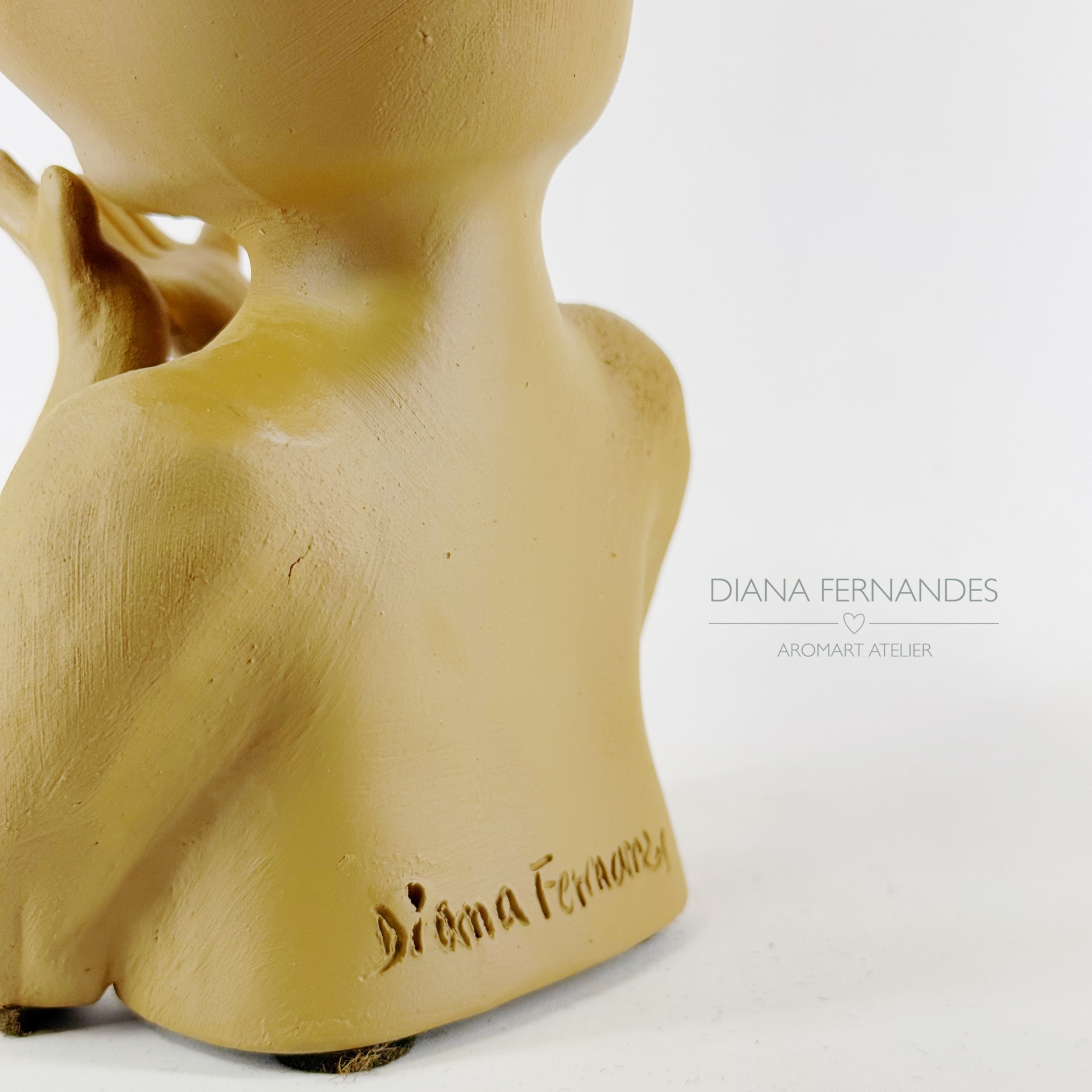 • Figura escultórica de cerâmica amarela clara assinada Diana Fernandes