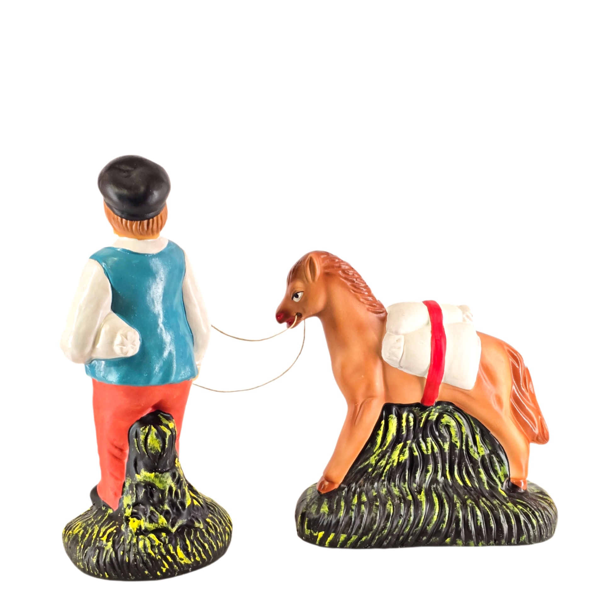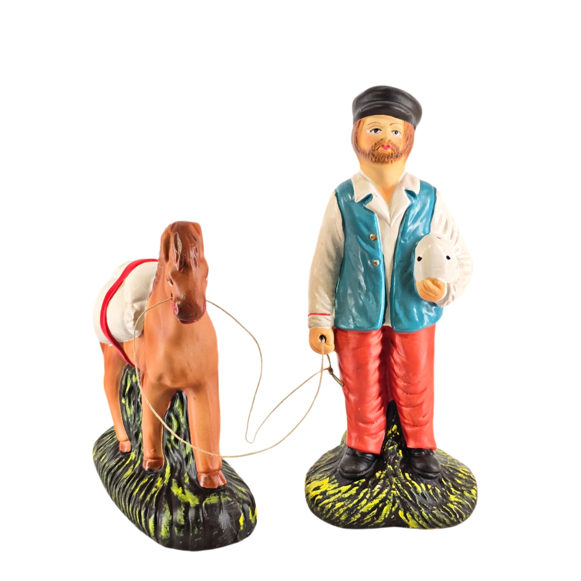 Moleiro com Cavalo 19,50 € Desconto de %. IVA incluído. Partilhar Comprar Contactar 1 unidades em stock Figura do homem moleiro com cavalo em cerâmica, ideal para completar a sua cascata de S. João ou o seu presépio. ----- (peças em cerâmica feitas de forma artesanal e pintadas à mão) ----- As peças em cerâmica, certificadas, são da autoria do Artesão João Macedo de Barcelos. Medidas: aproximadamente 20cm de altura. Ref. Interna: pastores e ofertas 402/O Marca Figuras do Barro® Tags cascatacascata de sao joaopresepio artesanalpresepio de barropresepio de ceramicachristmaschristmas cribmilitaryhandmadeceramicceramicaceramicartClaymoleirohomem moleiroCavalofarinhaSacos de farinhamoer farinha Características