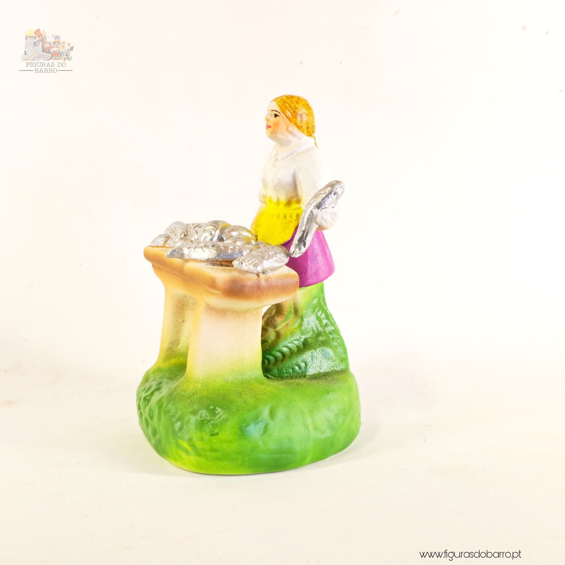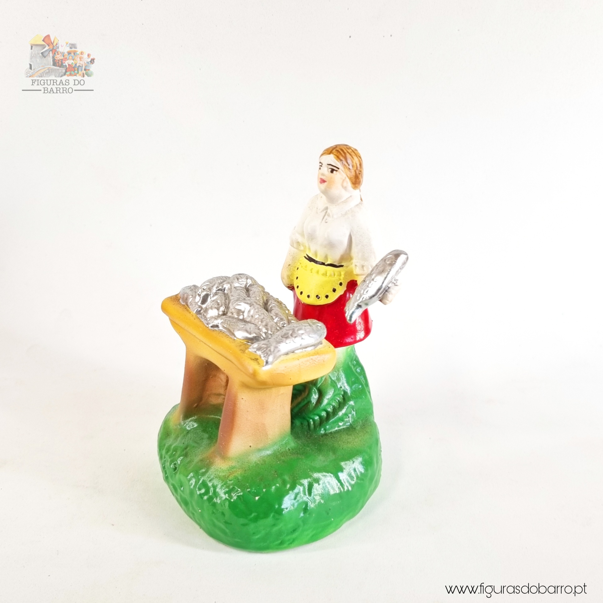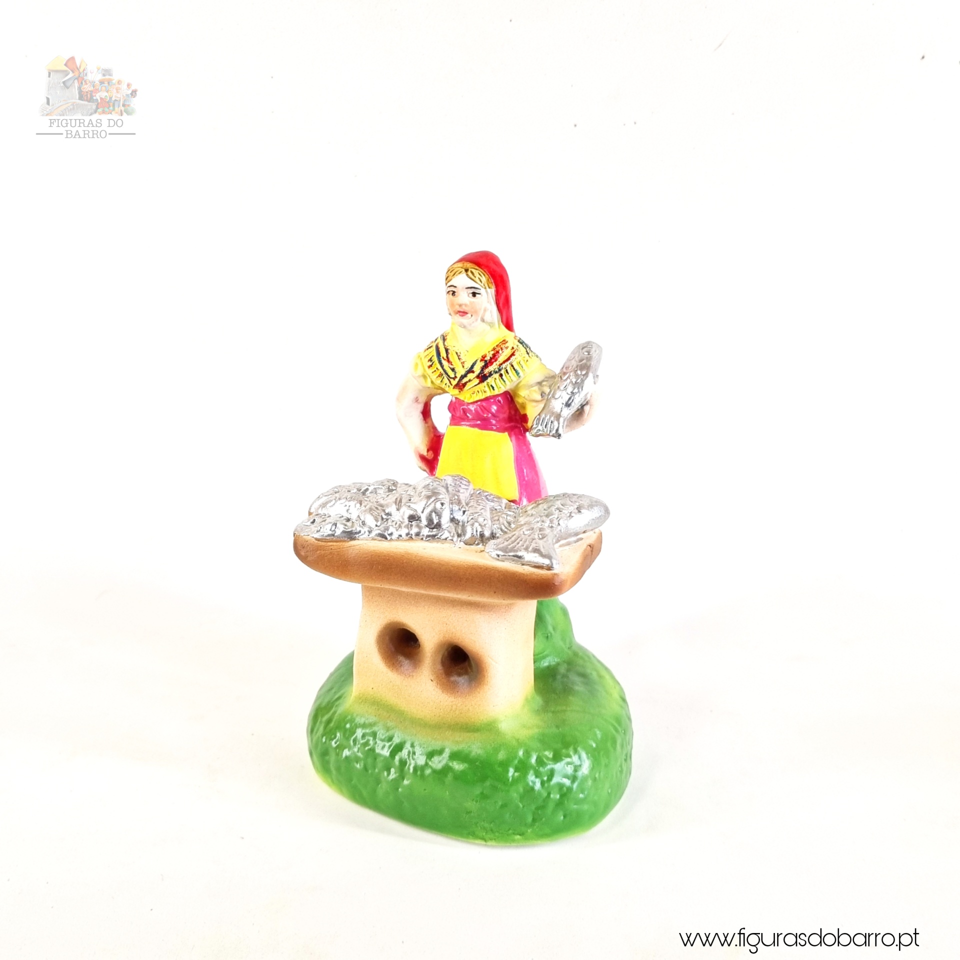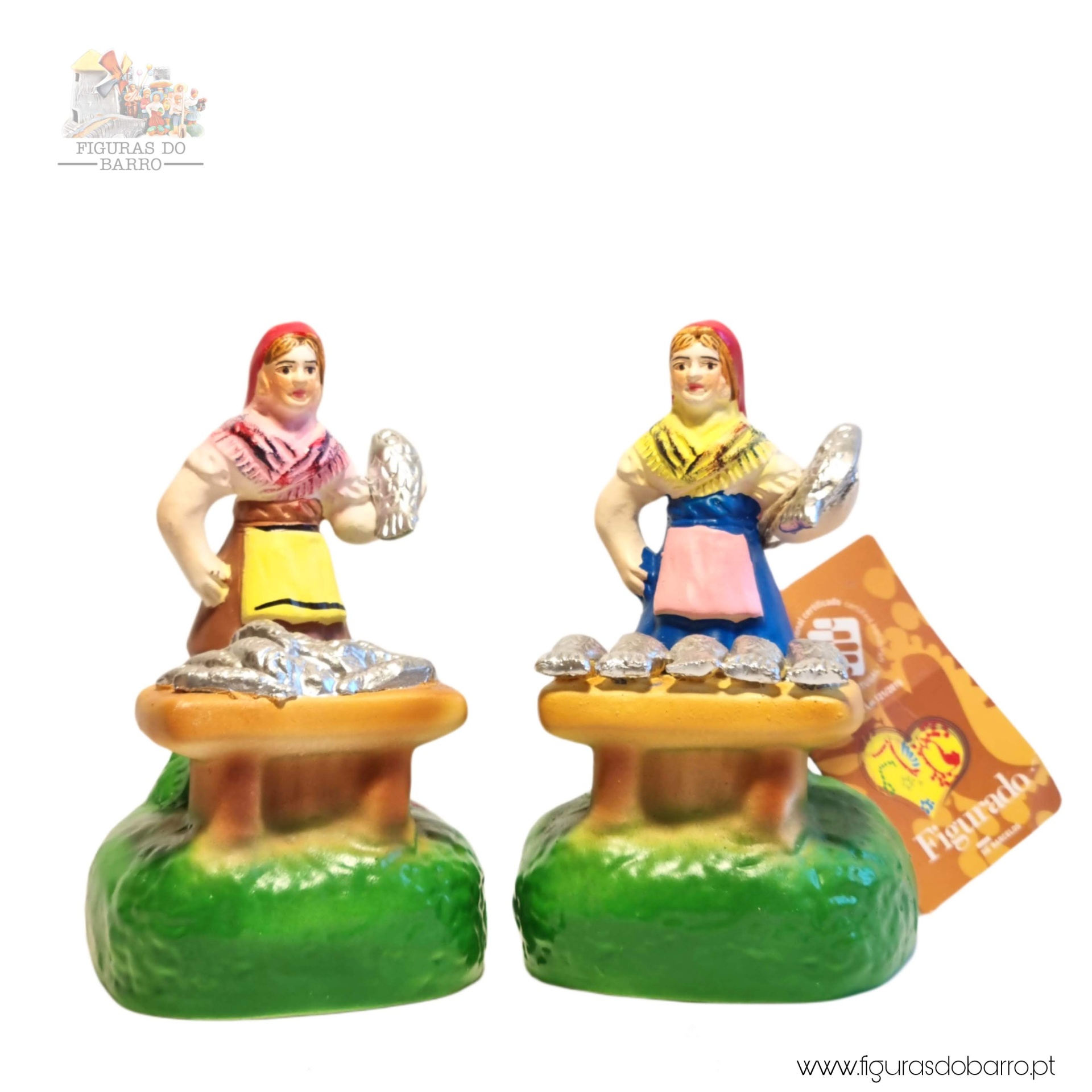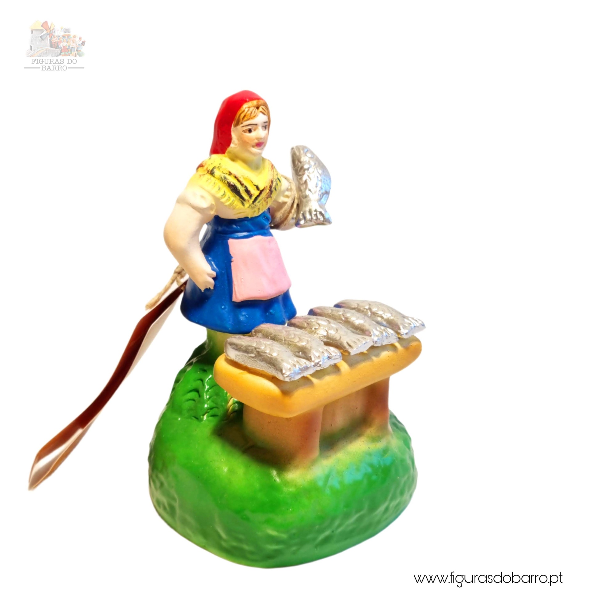 Mulher com banca a vender sardinhas 20,00 € Desconto de %. IVA incluído. Partilhar Cor saia Azul Castanha Vermelha Rosa Lilás Comprar Contactar 1 unidades em stock Figura da mulher a vender sardinhas na banca em cerâmica, ideal para completar a sua cascata de S. João ou o seu presépio. ----- (peças em cerâmica feitas de forma artesanal e pintadas à mão) ----- As peças em cerâmica, certificadas, são da autoria do Artesão João Macedo de Barcelos. Medidas: aproximadamente 12cm de altura. Ref. Interna: 354 Marca Figuras do Barro® Tags cascatacascata de sao joaopresepio artesanalpresepio de barropresepio de ceramicahandmadeceramicceramicaceramicartClaymulherpeixeiramulher peixeirasardinhasvendedora de sardinhasbancamulher a vender na bancamulher com bancavendedoramulher vendedora Características