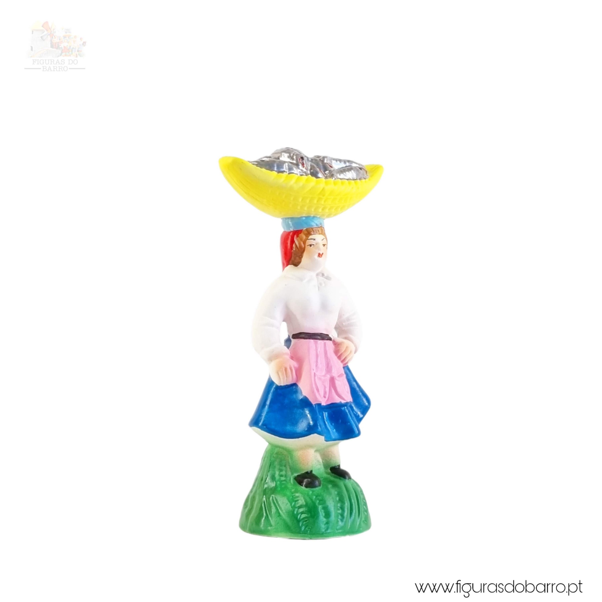 Mulher com cesta na cabeça a vender sardinhas 7,50 € Desconto de %. IVA incluído. Partilhar Cor Saia Azul Vermelha Rosa Lilás Comprar Contactar 2 unidades em stock Figura da mulher com cesta na cabeça a vender sardinhas em cerâmica, ideal para completar a sua cascata de S. João ou o seu presépio. ----- (peças em cerâmica feitas de forma artesanal e pintadas à mão) ----- As peças em cerâmica, certificadas, são da autoria do Artesão João Macedo de Barcelos. Medidas: aproximadamente 12cm de altura. Ref. Interna: VE 296 Marca Figuras do Barro® Tags cascatacascata de sao joaohandmadeceramicceramicaceramicartClaypeixeiramulher peixeiramulher vendedorapeixesenhor de matosinhosfestas popularessantos popularessanto antóniosão pedrosao joaocascata sao joaninacascata são joãocestasmulher a vender peixevarinasardinhaspolvocesta de vime Características