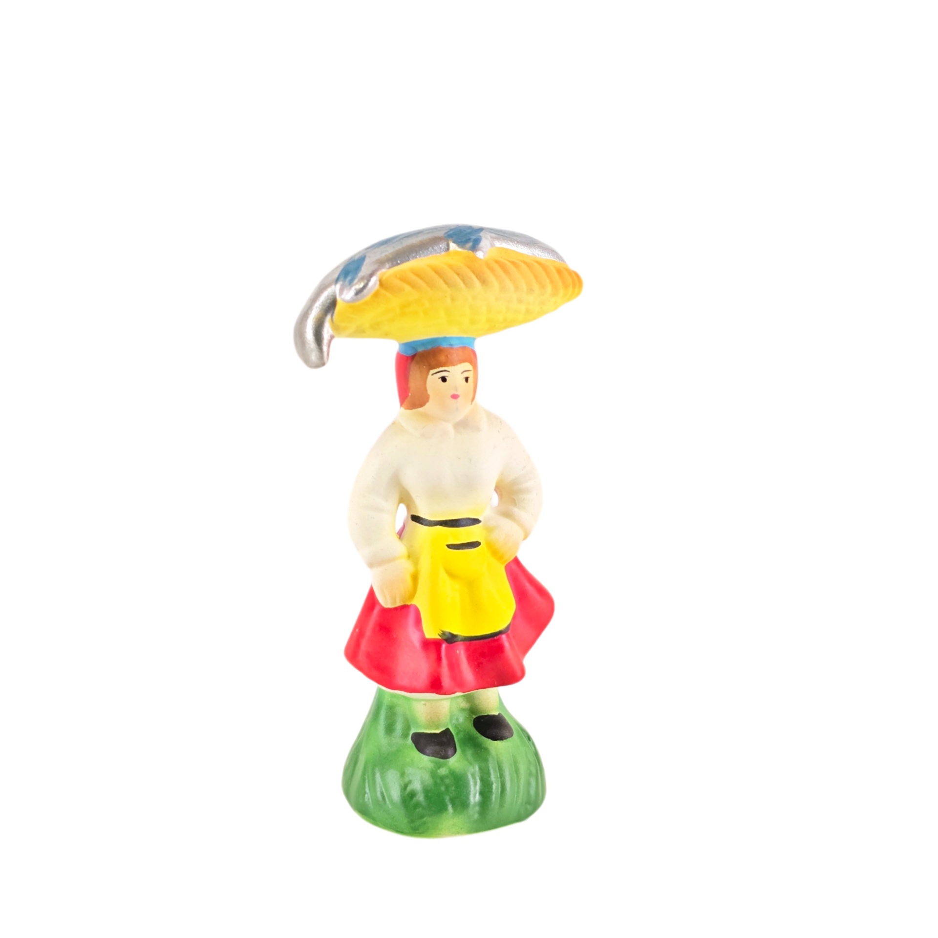 Mulher com cesta na cabeça a vender sável 7,50 € Desconto de %. IVA incluído. Partilhar Cor saia Verde Vermelha Azul Comprar Contactar 1 unidades em stock Figura da mulher com cesta na cabeça a vender sável em cerâmica, ideal para completar a sua cascata de S. João ou o seu presépio. ----- (peças em cerâmica feitas de forma artesanal e pintadas à mão) ----- As peças em cerâmica, certificadas, são da autoria do Artesão João Macedo de Barcelos. Medidas: aproximadamente 12cm de altura. Ref. Interna: VE. 296 Marca Figuras do Barro® Tags cascatacascata de sao joaopresepio de ceramicahandmadeceramicceramicaceramicartClaymulherpeixeiramulher peixeiravendedoramulher vendedorapeixesenhor de matosinhosfestas popularessantos popularessanto antóniosão pedrosao joaocascata sao joaninacascata são joãocestas Características