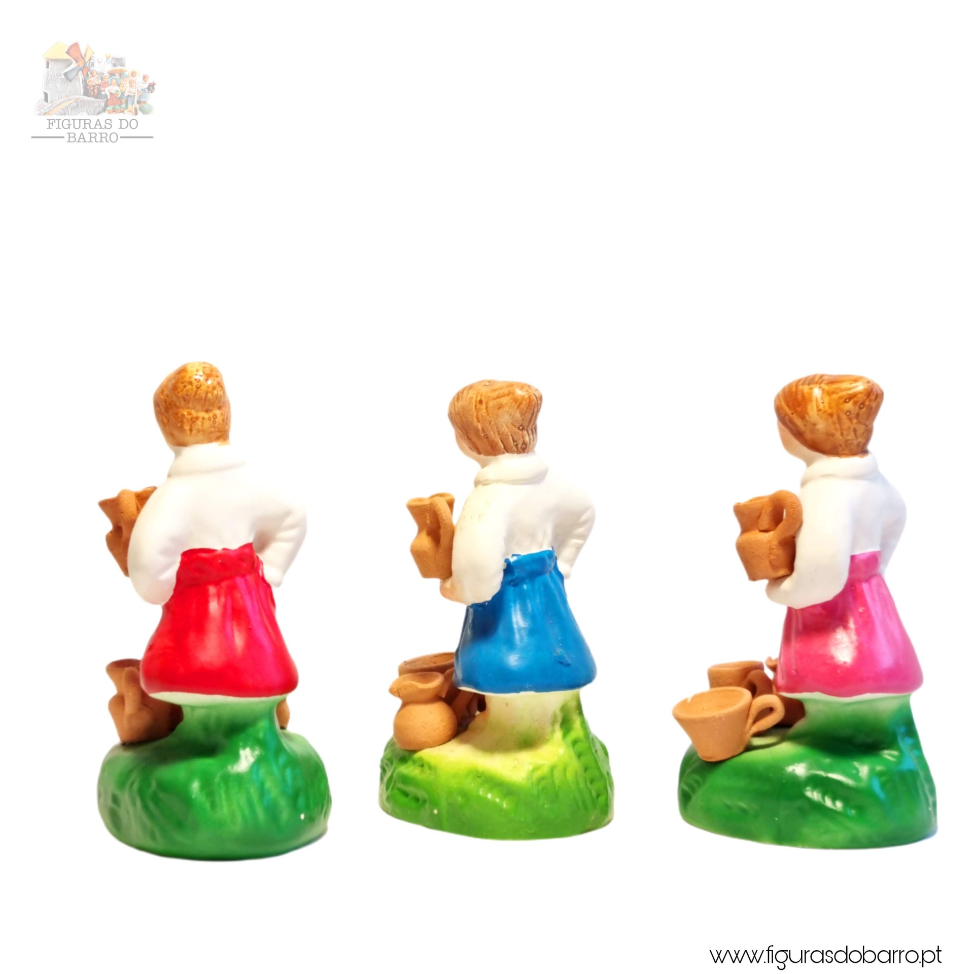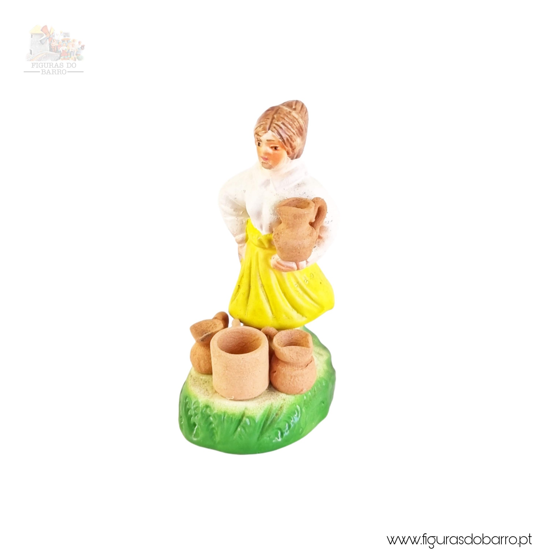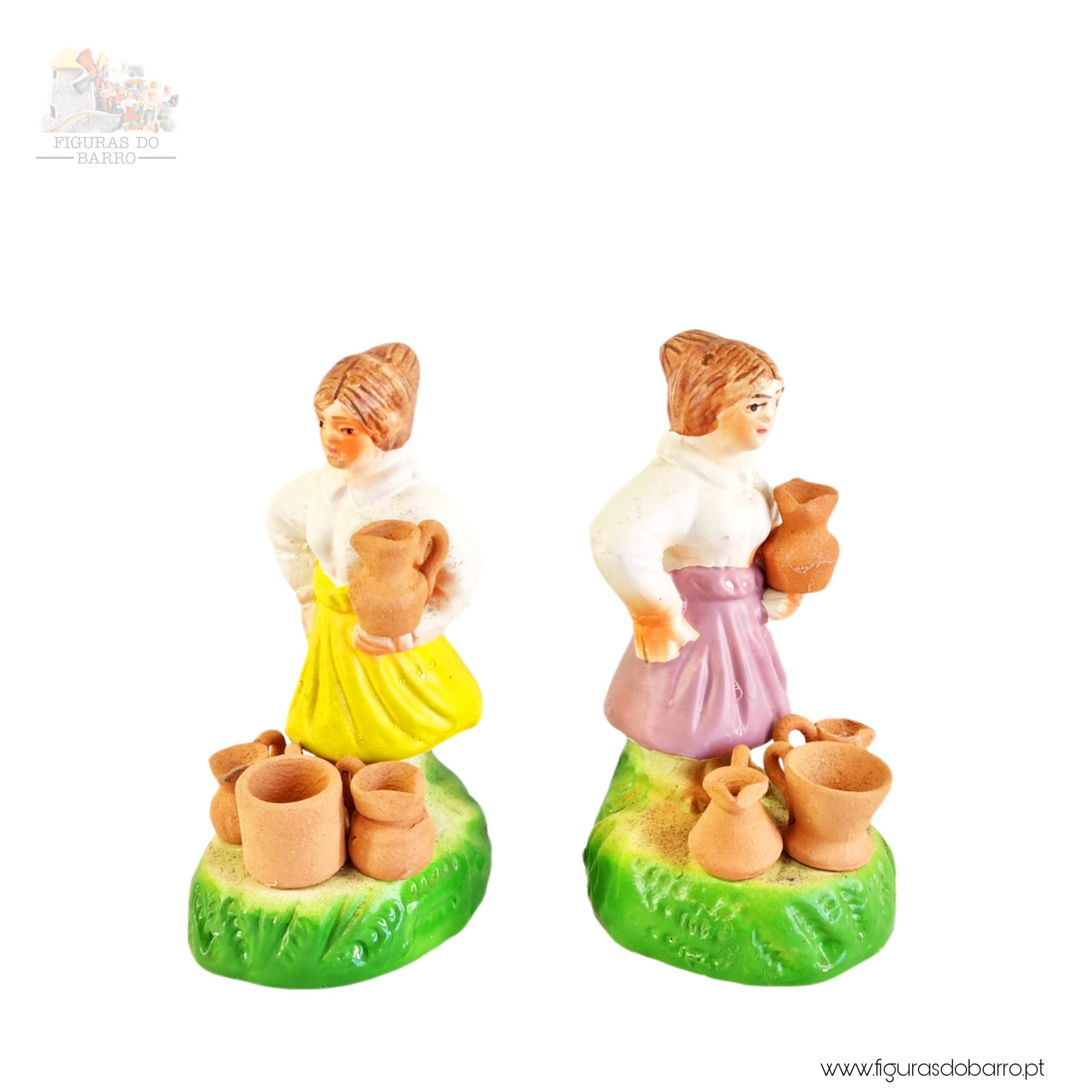 Mulheres vendedoras de canecas de barro 10,00 € Desconto de %. IVA incluído. Partilhar Cor saia Azul Rosa Vermelha Amarela Lilás Comprar Contactar 1 unidades em stock Figura da mulher a vender canecas de barro no chão, em cerâmica, ideal para completar a sua cascata de S. João ou o seu presépio. ----- (peças em cerâmica feitas de forma artesanal e pintadas à mão) ----- As peças em cerâmica, certificadas, são da autoria do Artesão João Macedo de Barcelos. Medidas: aproximadamente 12cm de altura. Ref. Interna: 355 Marca Figuras do Barro® Tags cascatacascata de sao joaopresepio artesanalpresepio de barropresepio de ceramicahandmadeceramicceramicaceramicartClaymulherbancamulher a vender na bancamulher com bancavendedoracanecas de barrovendedora de canecas Características