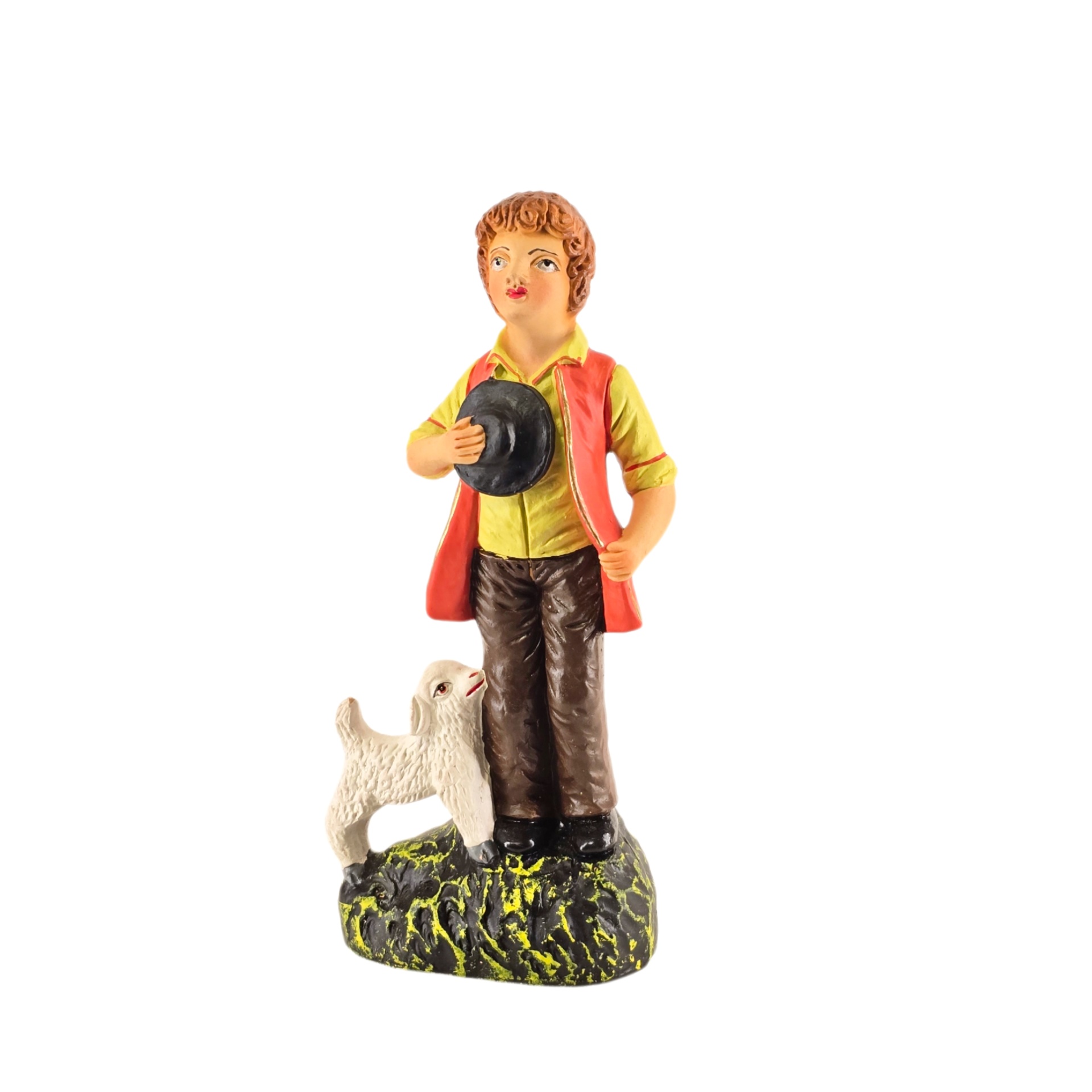 Pastor 9,50 € Desconto de %. IVA incluído. Partilhar Cor Calças Azul Castanho Comprar Contactar 1 unidades em stock Pastor em cerâmica com ovelha, ideal para completar o seu presépio ou a cascata de S. João. ----- (peças em cerâmica feitas de forma artesanal e pintadas à mão) ----- As peças em cerâmica, certificadas, são da autoria do Artesão João Macedo de Barcelos. Medidas: aproximadamente 20cm de altura. Ref. Interna: pastores e ofertas 402/O Marca Figuras do Barro® Tags pastorpastor ovelhapastor para presepioherdsmanovejaovelhaovelha com sinoovelhascarneirocordeirocarneiroscarnerochristmas cribnativity scenepresepio artesanalpresepio de barropresepio de ceramicapresepio de natalpresepio portuguêshandmadeceramicceramicaClaypeça de cerâmica Características