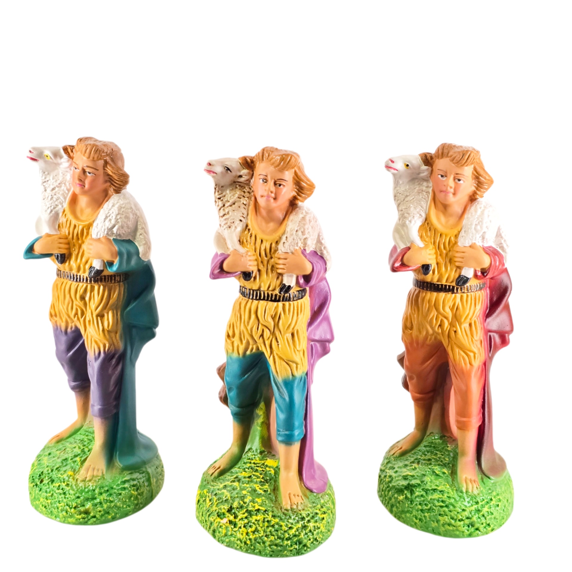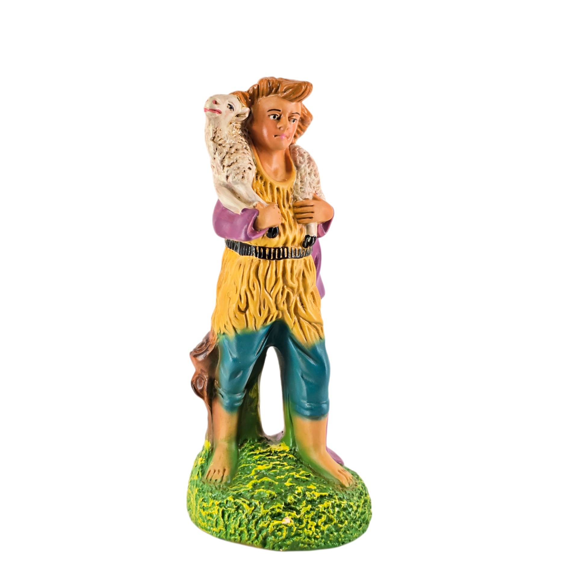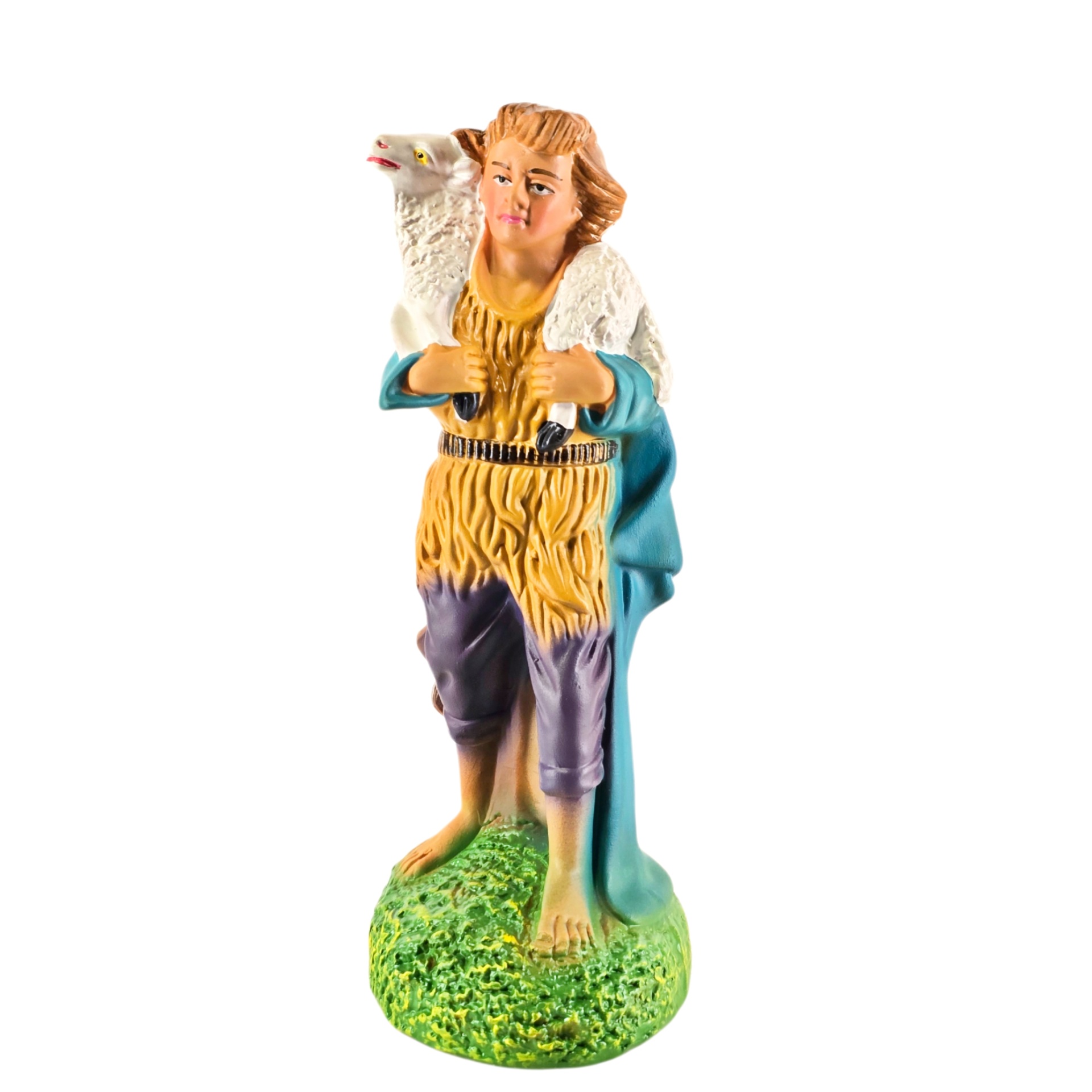Pastor com Ovelha 9,50 € Desconto de %. IVA incluído. Partilhar Cor Calções Azul Lilás Laranja Comprar Contactar 1 unidades em stock Pastor em cerâmica com ovelha às costas, ideal para completar o seu presépio ou a cascata de S. João. ----- (peças em cerâmica feitas de forma artesanal e pintadas à mão) ----- As peças em cerâmica, certificadas, são da autoria do Artesão João Macedo de Barcelos. Medidas: aproximadamente 18cm de altura. Ref. Interna: pastores e ofertas 402/O Marca Figuras do Barro® Tags pastorpastor ovelhapastor para presepiopastor tocar flautaherdsmanovejaovelhaovelha com sinoovelhascarneirocordeirocarneiroscarnerochristmas cribnativity scenepresepio artesanalpresepio de barropresepio de ceramicapresepio de natalpresepio portuguêshandmadeceramicceramicaClaypeça de cerâmica Características