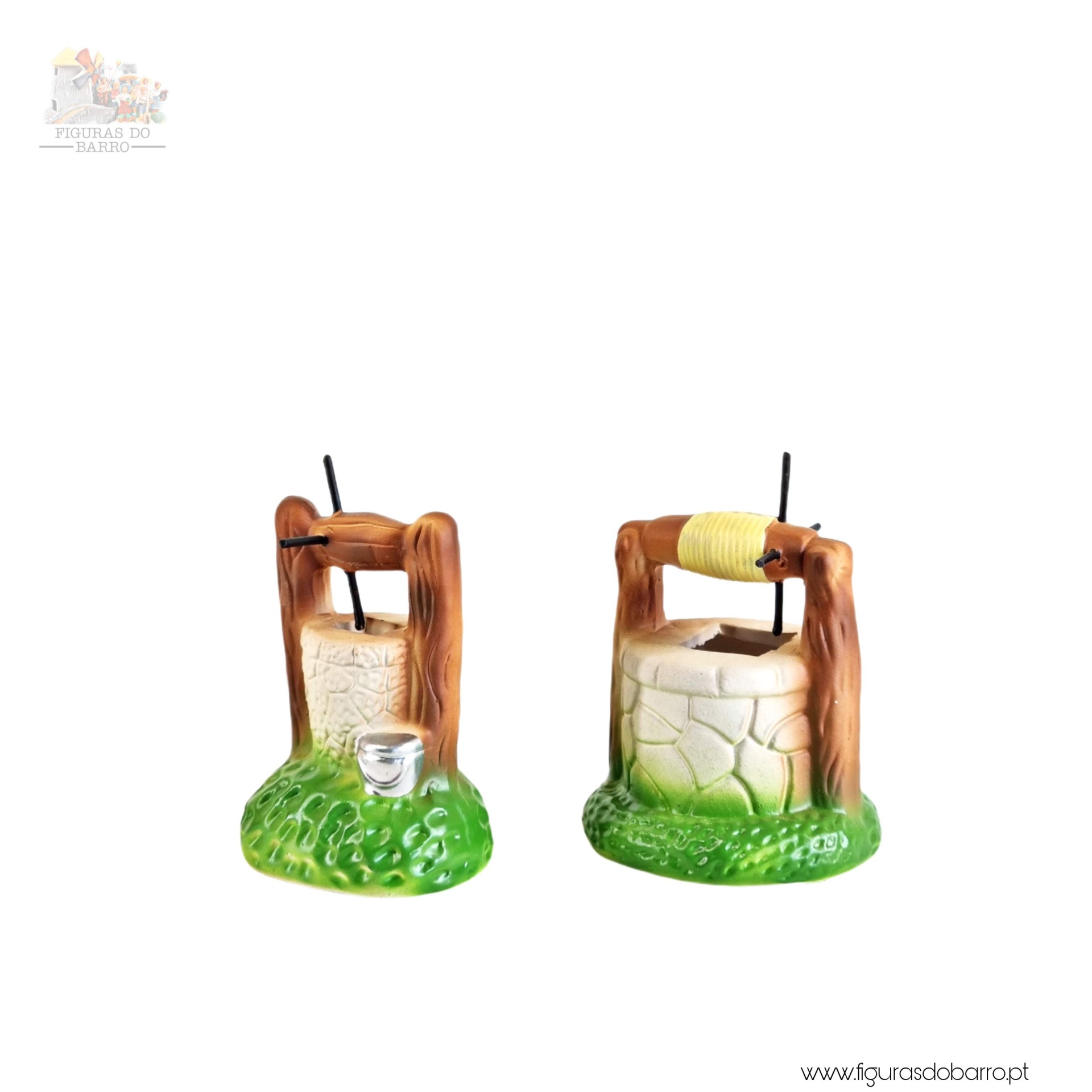 Poço pequeno 2,50 € Desconto de %. IVA incluído. Partilhar Comprar Contactar 4 unidades em stock Poço pequeno em cerâmica, ideal para completar a sua cascata de S. João ou o seu presépio. ----- (peças em cerâmica feitas de forma artesanal e pintadas à mão) ----- As peças em cerâmica, certificadas, são da autoria do Artesão João Macedo de Barcelos. Medidas: aproximadamente 10cm de altura. Ref. Interna: 441 Marca Figuras do Barro® Tags cascatacascata de sao joaosantos popularessanto antóniosao joaosão pedrocasaspresepio artesanalpresepiospresepio portuguêsbarrohandmadepoçopoçosfigurado de barcelos Características