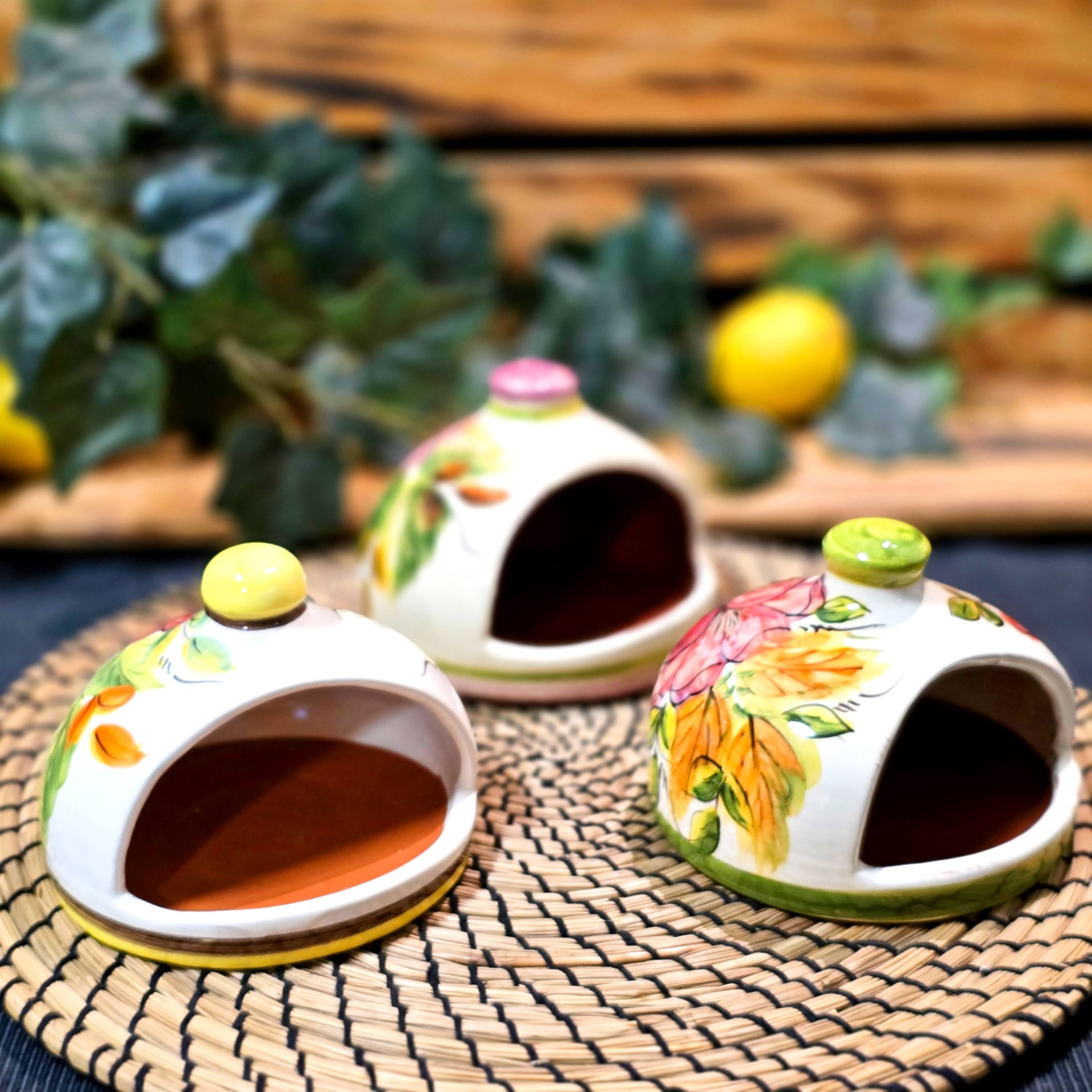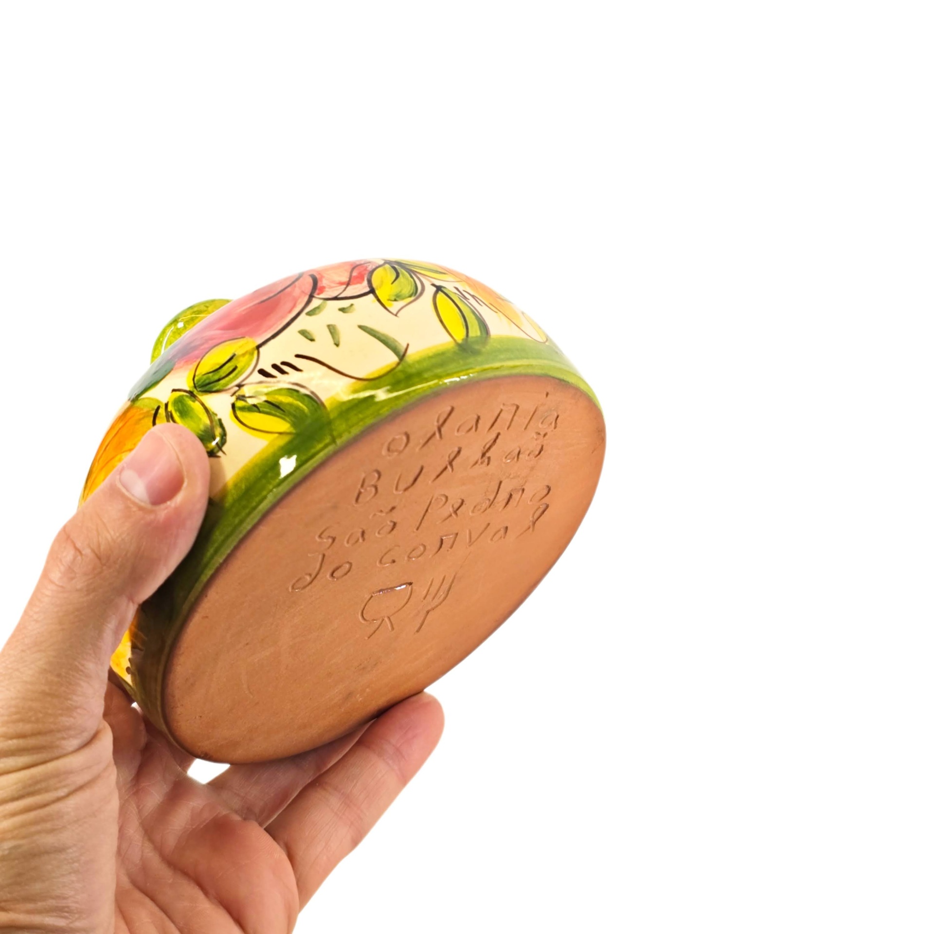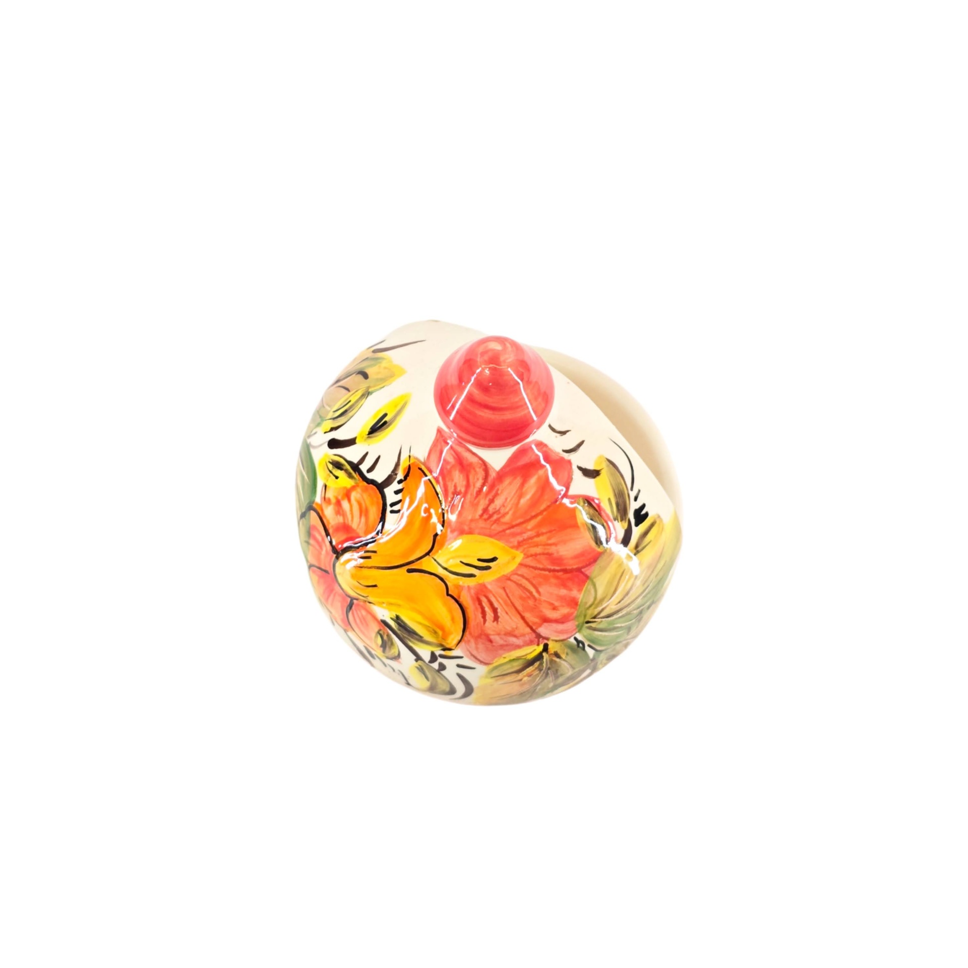 • Peça decorativa em cerâmica pintada à mão com padrão floral e abertura frontal