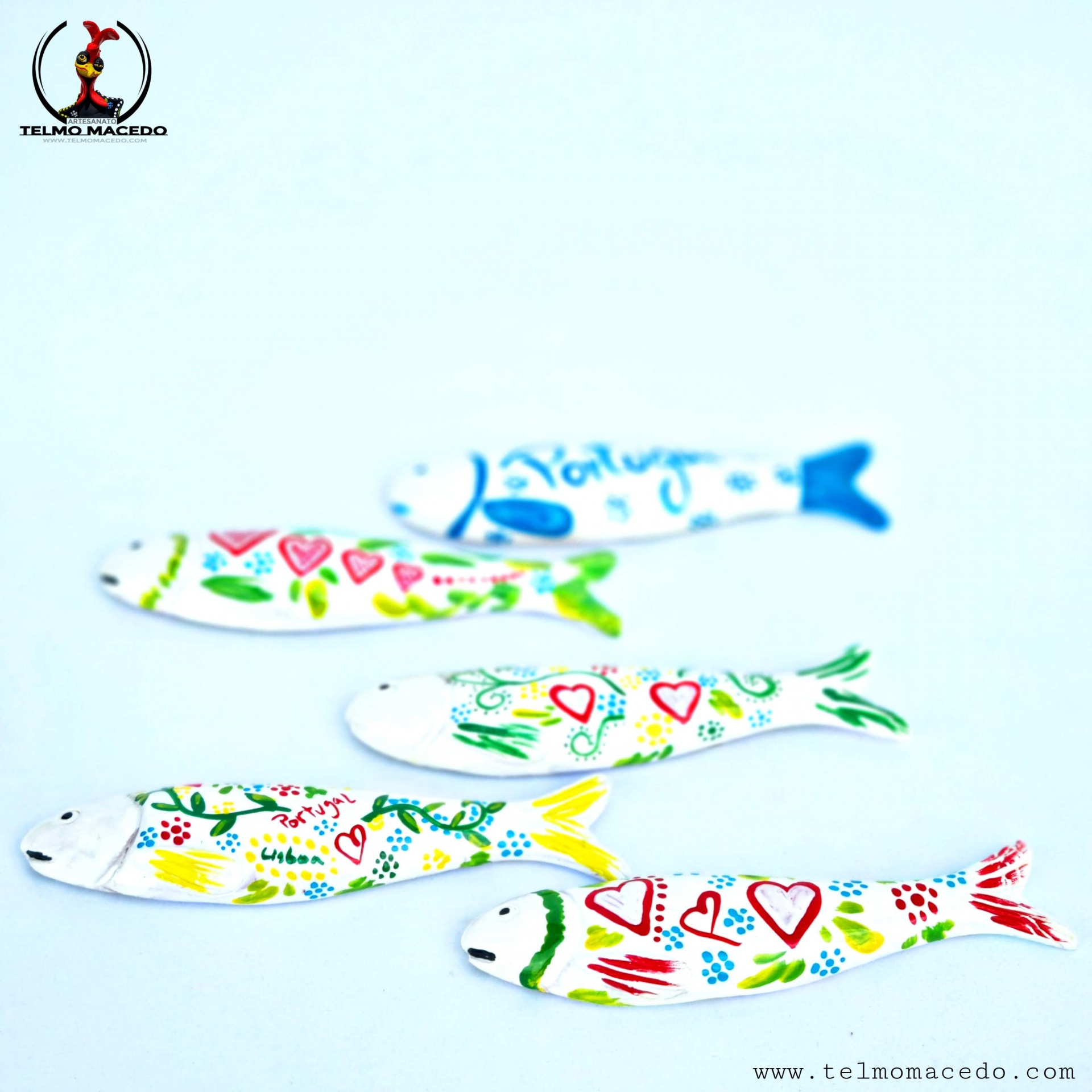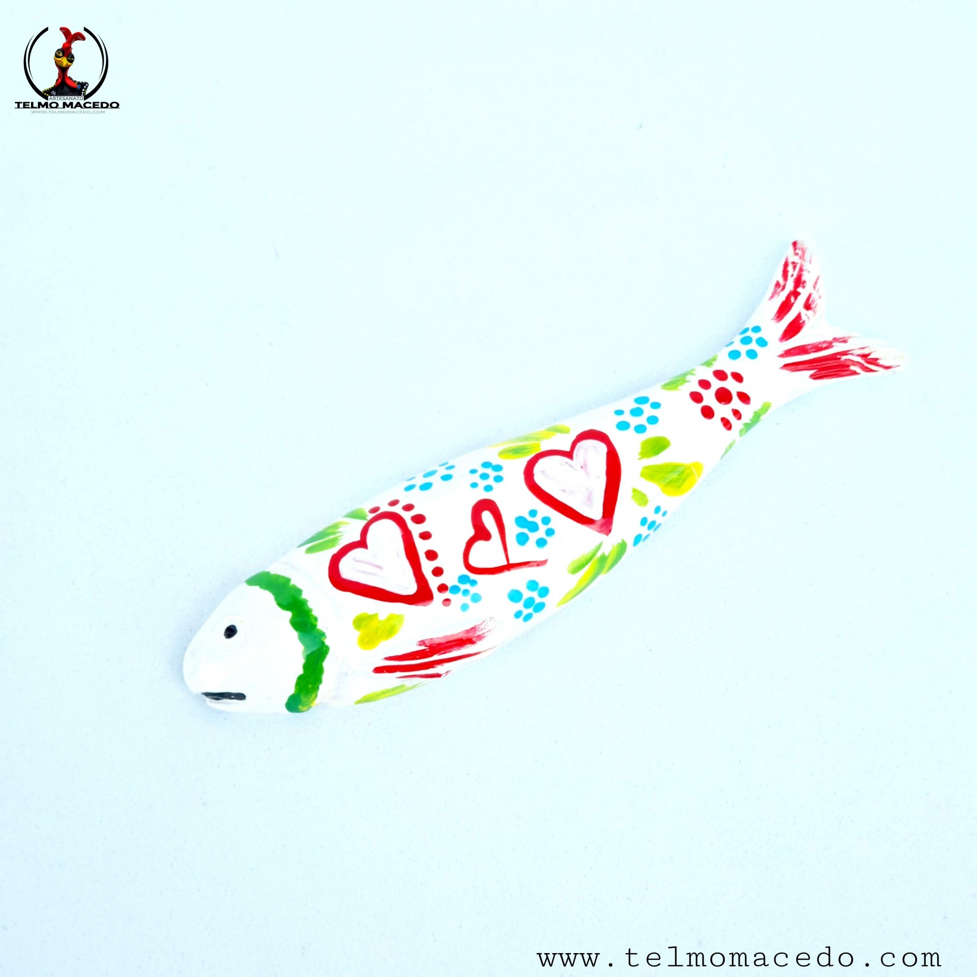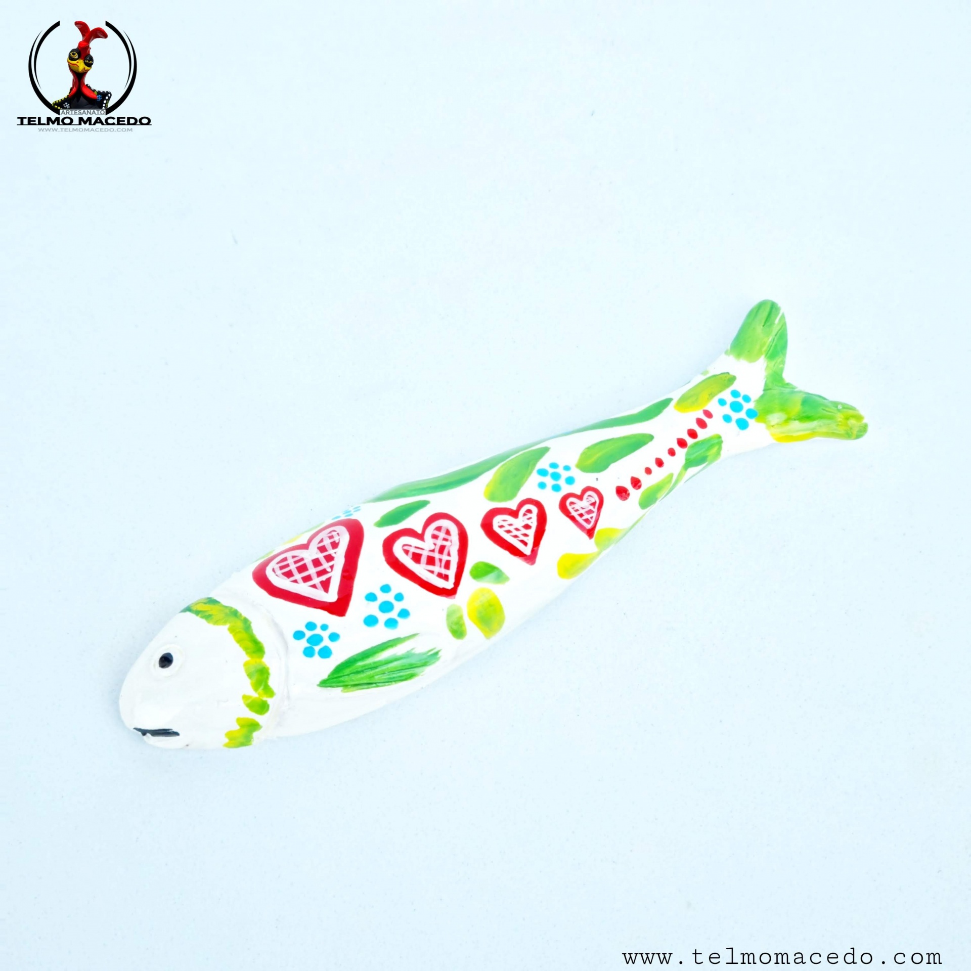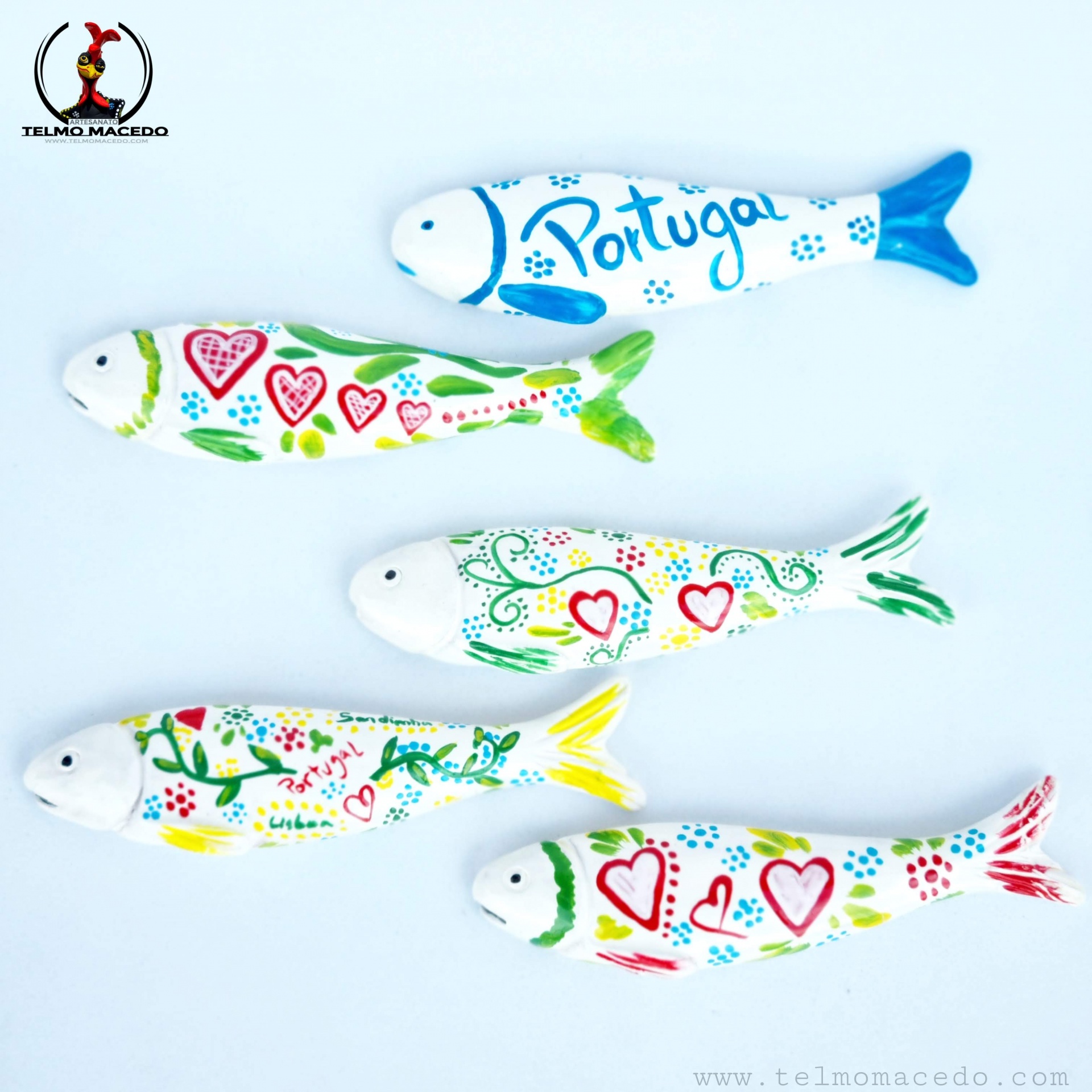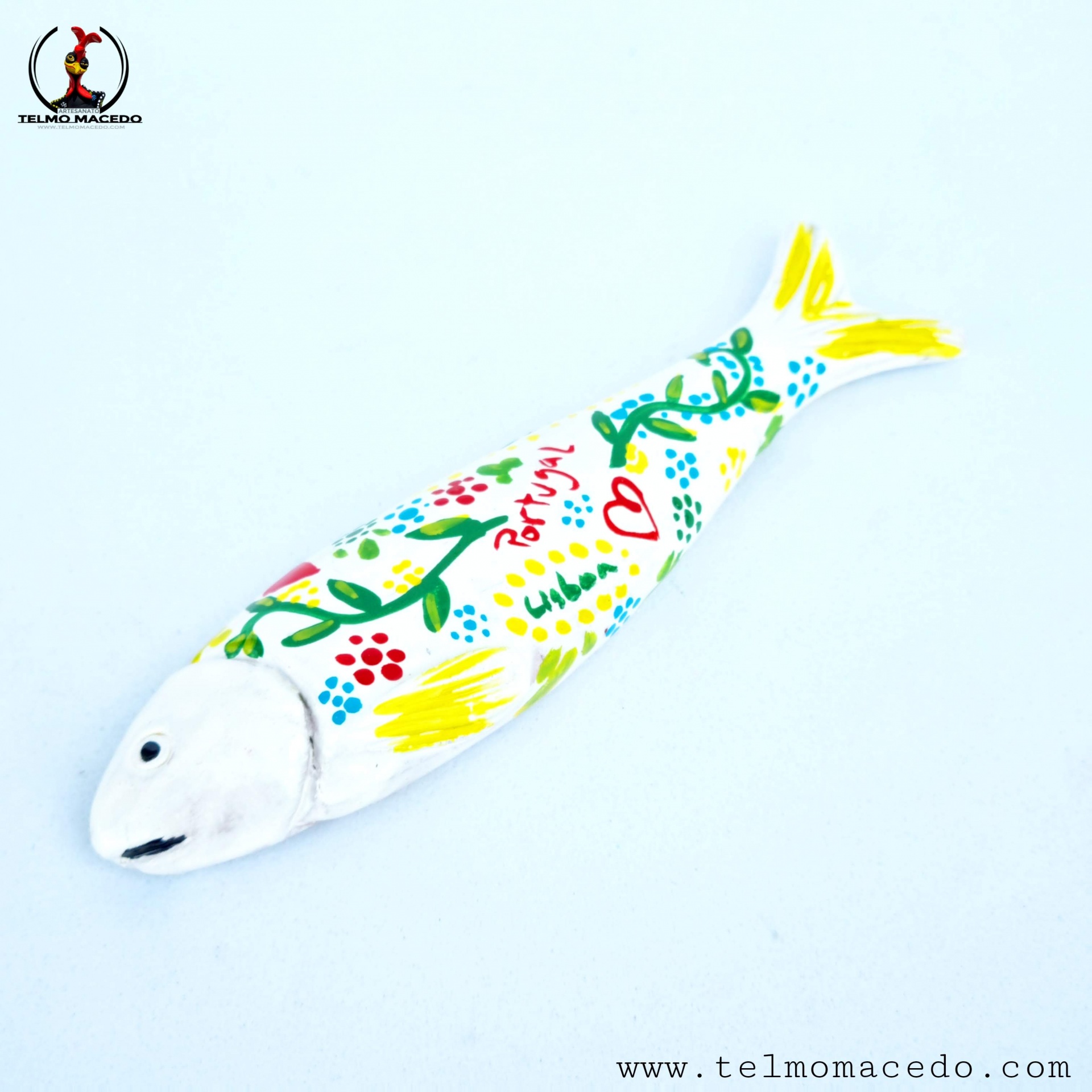 Sardinhas Brancas Íman cores tradicionais 5,00 € Desconto de %. IVA incluído. Partilhar O produto encontra-se sem stock. Sardinhas Íman cores tradicionais em ceramica. Pintadas a mão com cores brilhantes com dois pequenos e fino ímans de grande "potencia". Com aproximadamente 12cm Nota: Na compra de uma destas figuras as cores podem ter algumas diferenças com a enviada, pois são peças pintadas a mão, peças com pinturas únicas. Marca TelmoMacedoArtista® Tags sardinhassardinhas artesanaissardinhas de ceramicasardinhas de paredesardinhas iman Características