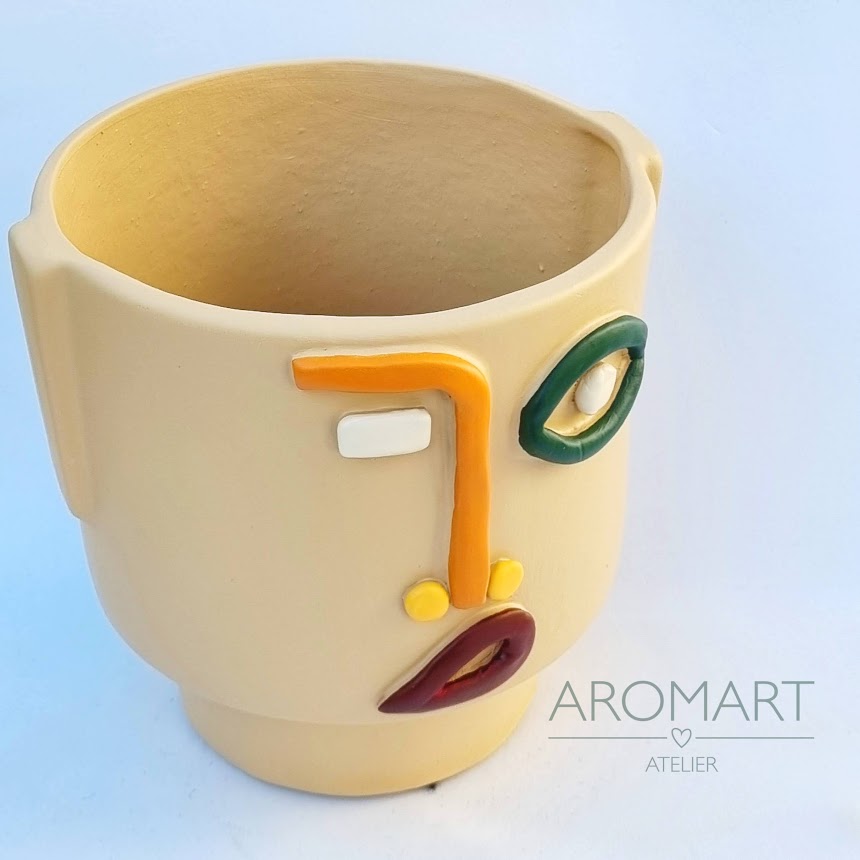 • Vaso cerâmico em forma de rosto colorido
