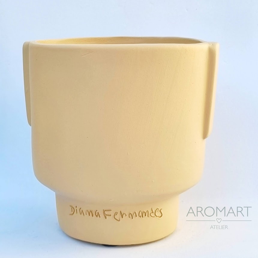 • Vaso cerâmico amarelo claro fosco assinado Diana Fernandes