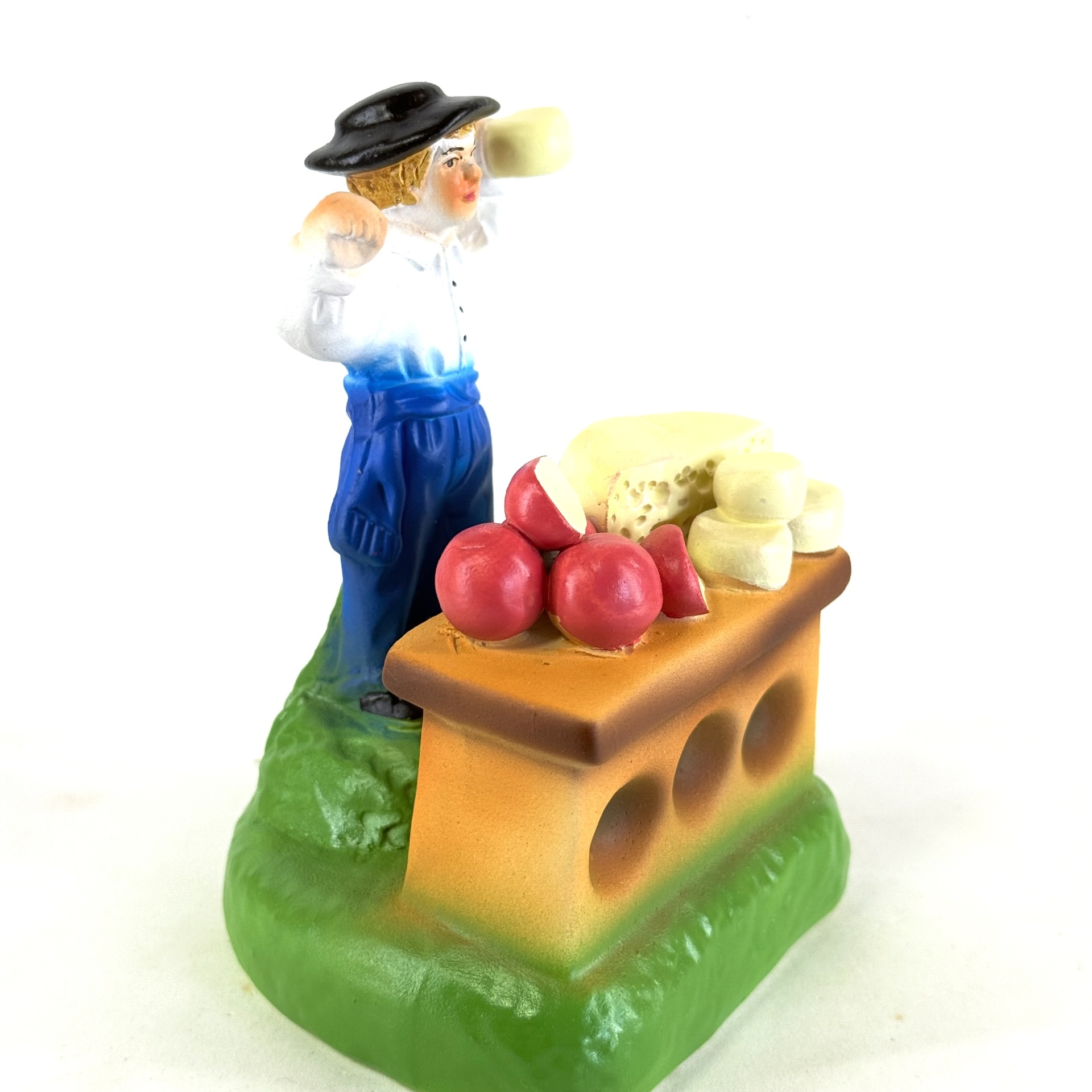 Vendedores de Queijo na Banca 20,00 € Desconto de %. IVA incluído. Partilhar Opção Mulher Saia Azul Mulher Saia Rosa Homem Calças Cinza Homem Calças Azul Comprar Contactar 1 unidades em stock Figura da mulher e do homem a venderem queijos na banca em cerâmica, ideal para completar a sua cascata de S. João. ----- (peças em cerâmica feitas de forma artesanal e pintadas à mão) ----- As peças em cerâmica, certificadas, são da autoria do Artesão João Macedo de Barcelos. Medidas: aproximadamente 14cm de altura. Ref. Interna: 352 NOTA: as cores das roupa podem ser diferentes das cores das fotos. Marca Figuras do Barro® Tags cascatacascata de sao joaopresepio artesanalpresepio de barropresepio de ceramicahandmadeceramicceramicaceramicartClaybancasenhor de matosinhoscascata sao joaninacascata são joãosantos populareshomem a vender na bancavendedorhomem vendedormulher vendedoraqueijocheesemulher a vender queijohomem a vender queijovendedores de bancavendedores de queijo Características
